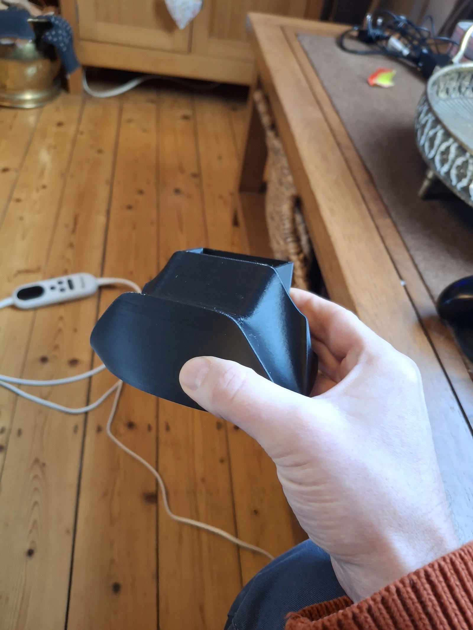 Nâng cấp góc chơi game của bạn với đế giữ tay cầm Xbox được thiết kế thông minh và hiện đại. Sản phẩm này không chỉ là một chiếc giá đỡ giúp cố định tay cầm Xbox của bạn một cách an toàn và chắc chắn trên bàn làm việc, mà còn được tích hợp thêm một ngăn chứa đồ nhỏ gọn ở phía sau. Bạn có thể dễ dàng cất giữ các món phụ kiện nhỏ hoặc pin dự phòng ngay phía sau tay cầm, giúp không gian của bạn luôn sạch sẽ, gọn gàng và khoa học. Đây là một mô hình in 3D vô cùng hữu ích, dễ thực hiện và cực kỳ bền bỉ nếu bạn sử dụng vật liệu PLA chất lượng. Một lựa chọn không thể thiếu để thể hiện cá tính riêng cho các game thủ chính hiệu.