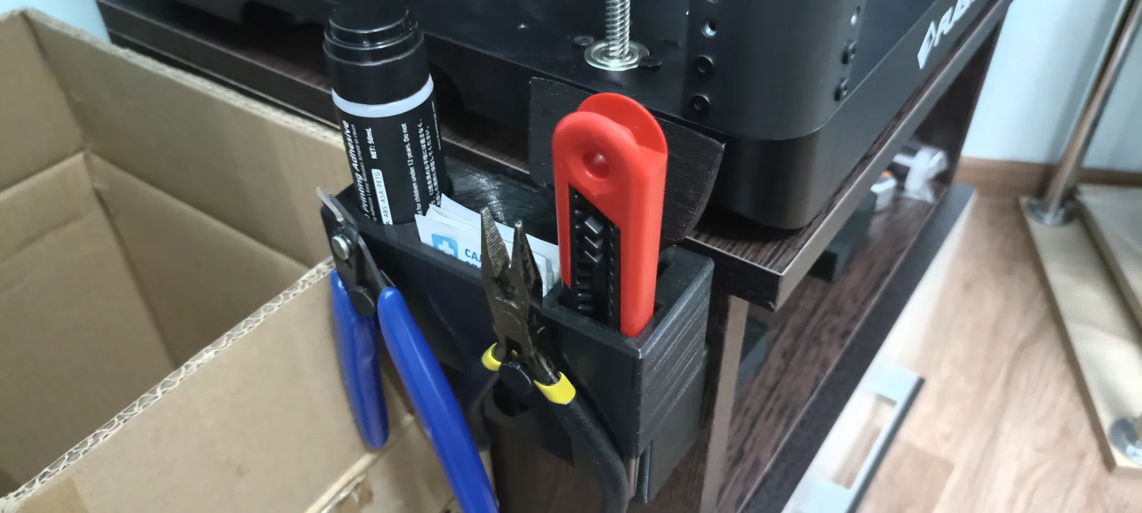 Bạn đang đau đầu vì bàn làm việc quanh máy in 3D quá bừa bộn với kìm, dao và keo dán? Đừng lo, chiếc khay treo dụng cụ in 3D này được thiết kế chuyên biệt để giúp bạn sắp xếp tất cả các phụ kiện cần thiết một cách ngăn nắp và khoa học nhất. Với thiết kế thông minh, bạn có thể dễ dàng gắn khay lên cạnh bàn hoặc khung máy bằng băng dính hai mặt mà không cần khoan đục. Sản phẩm giúp tiết kiệm diện tích, giữ dụng cụ luôn trong tầm tay và tạo nên vẻ chuyên nghiệp cho góc in ấn của bạn. Đây là một món phụ kiện in 3D cực kỳ thực tế, dễ in và dễ sử dụng cho mọi người chơi từ nghiệp dư đến chuyên nghiệp.
