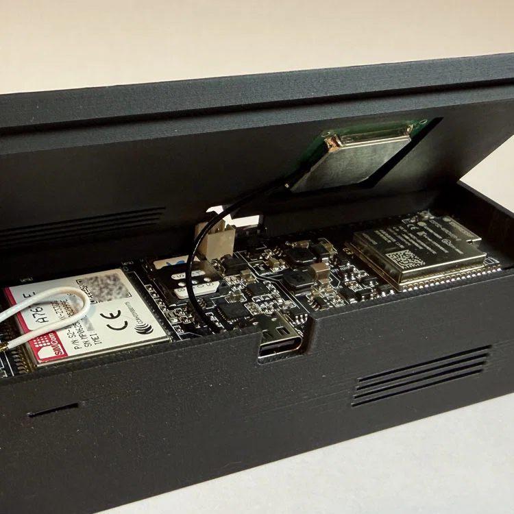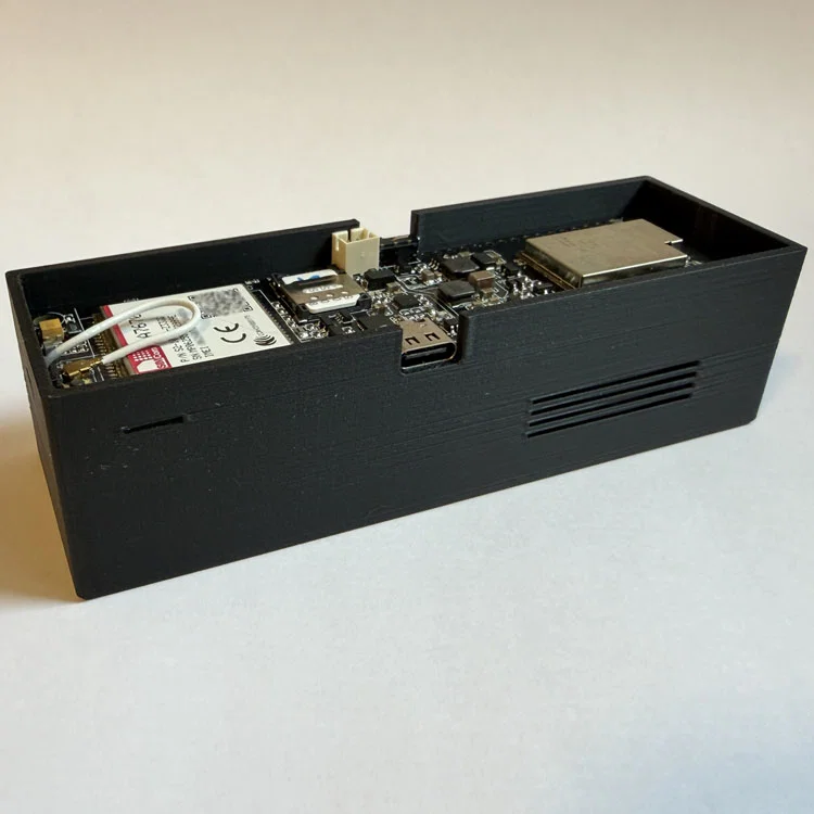 Vỏ hộp 2 mảnh dành cho Lilygo T-A7670E/G/SA R2 được thiết kế với kích thước nhỏ gọn nhất có thể. Ăng-ten LTE được đặt ở phần đáy hộp và ăng-ten GPS nằm ở phần nắp. Có các lỗ khoét cho cổng USB-C và hai phiên bản nắp để lựa chọn - một phiên bản có khe đi dây cho đầu nối 5 volt (xem hình ảnh đính kèm).