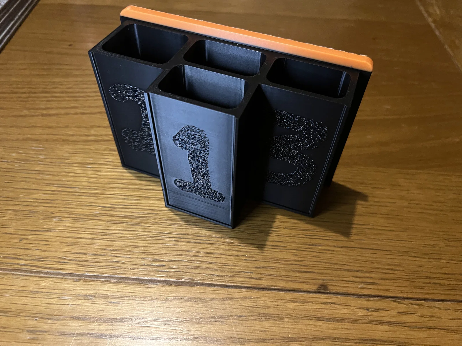 Phần chữ số nổi được mình thêm vào bằng phần mềm slicer, file STL gốc không có sẵn các số 1, 2, 3 trên bề mặt bục.