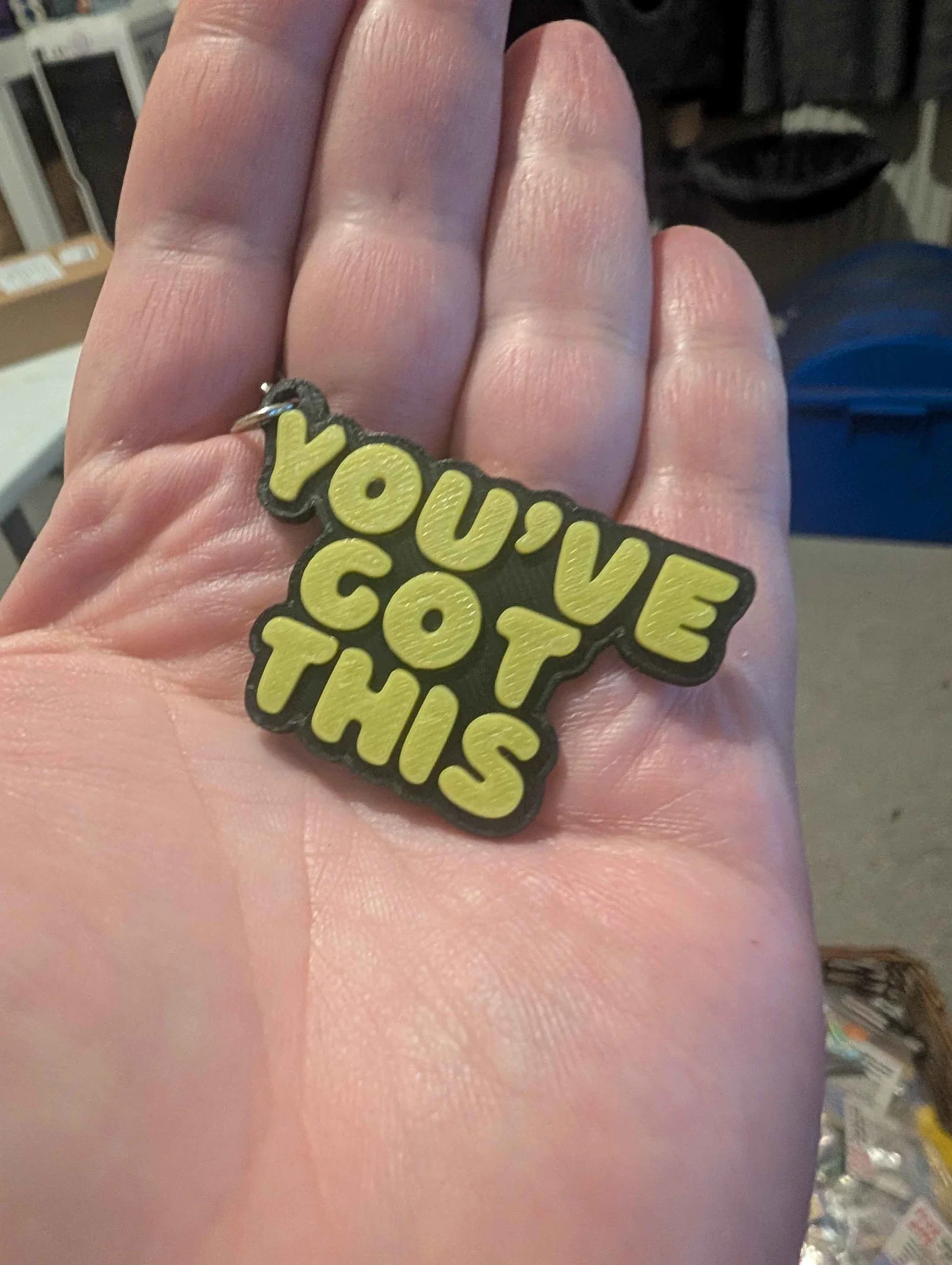 • In đa màu: Nếu máy in của bạn hỗ trợ thay đổi màu sợi nhựa tại các lớp (layer swap), hãy tận dụng tính năng này để làm nổi bật dòng chữ "You've Got This" so với phần nền.