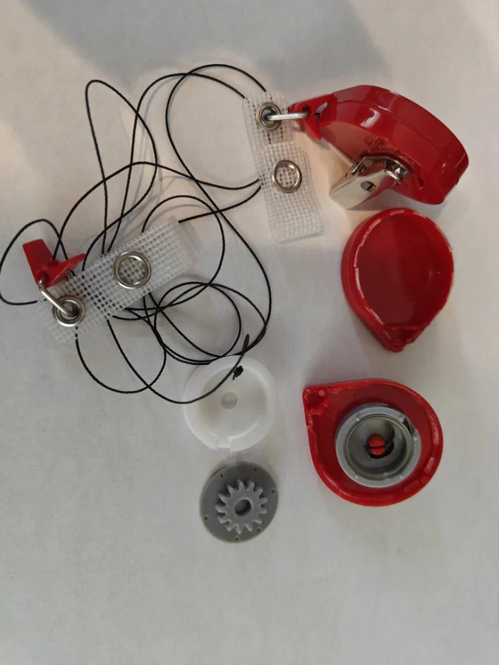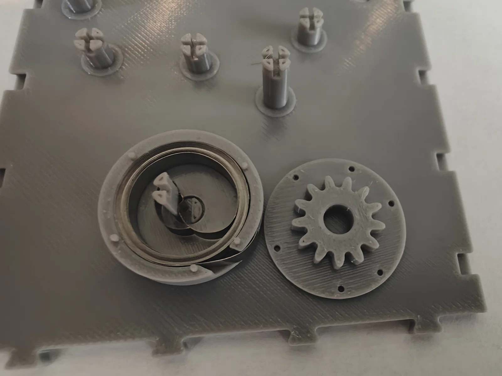 Để giải quyết vấn đề lò xo bị nhão khi đóng hộp trong thời gian dài, mình đã chỉnh sửa thiết kế để tận dụng lò xo kim loại rộng 3mm từ dây đeo thẻ (retractable lanyard) cho bộ bánh răng mới. Bạn vẫn sử dụng các linh kiện chính từ mô hình gốc, chỉ cần thay thế tấm bên trái (left plate) và lò xo bằng các bộ phận mình cung cấp ở đây. Sau khi lắp lò xo vào, mình đã dùng keo 502 để cố định hai mảnh thân lò xo lại với nhau.