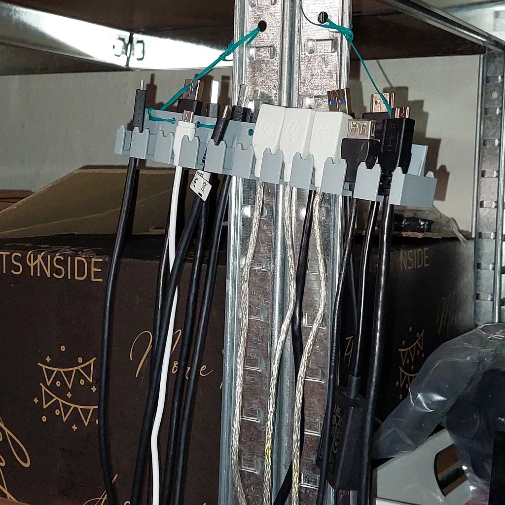 Tui có cả triệu sợi cáp đủ loại luôn. Nhiều lúc bí quá, tui toàn phải mua cáp mới vì không tìm thấy sợi cũ đâu cả. Thế nên, tui muốn có cái gì đó để giữ mấy sợi cáp "cần thiết" ngay trong tầm tay mà không bị vứt lung tung khắp sàn phòng khách. Hơn nữa, việc có một nơi để giữ "cả triệu sợi cáp" đó gọn gàng và dễ thấy sẽ giúp tui biết rõ mình đang có cái gì và thiếu cái gì. Ban đầu tui chỉ thiết kế cho cáp USB thôi, nhưng nhận ra cáp Ethernet (RJ45) cũng rất cần thiết. Thiết kế gốc là để bắt vít, mà như vậy thì hơi hư hại bề mặt, nên tui đã nghĩ ra vài cách thay thế khác.