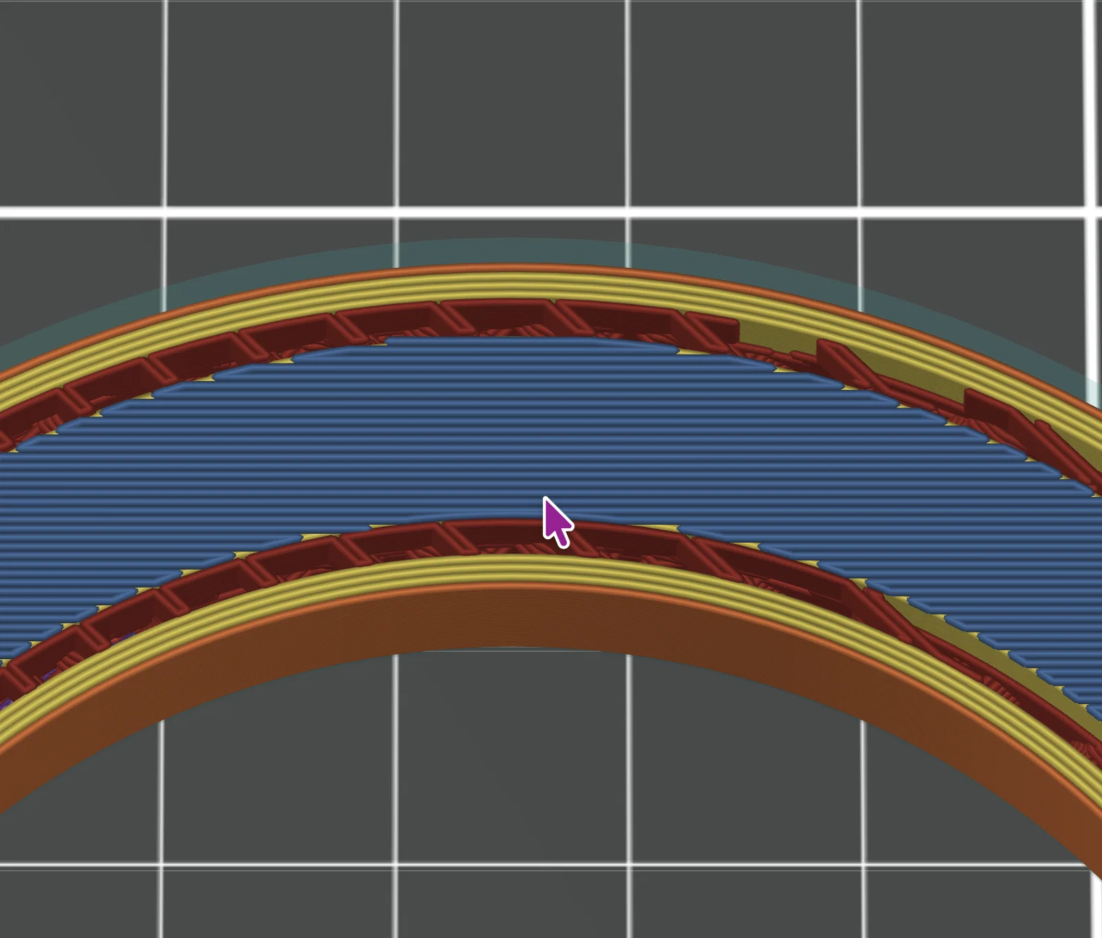 Nếu chúng ta slice mô hình này, chúng ta sẽ thu được các đường cầu như sau. Lưu ý rằng góc bridging của tôi đang để là 0°: