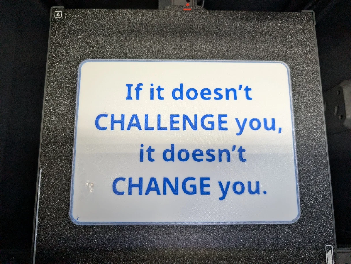 Bạn muốn thay đổi bản thân nhưng cần một nguồn động lực mỗi ngày? Mẫu bảng hiệu in 3D "Challenge for Change" với thiết kế đơn giản, tinh tế sẽ là món quà tuyệt vời dành cho bạn. Bảng hiệu không chỉ là vật trang trí bàn làm việc hay góc học tập, mà còn là thông điệp ý nghĩa về sự kiên trì và trưởng thành. Với kỹ thuật in 3D đơn giản, sử dụng phương pháp thay đổi màu sắc nhựa tại các layer nhất định, bạn hoàn toàn có thể tự tay tạo ra chiếc bảng hiệu này tại nhà bằng chất liệu PLA. Đây là dự án nhỏ nhưng mang lại hiệu quả tinh thần lớn, giúp không gian của bạn trở nên chuyên nghiệp và đầy cảm hứng. Hãy tải ngay file STL để cùng trải nghiệm niềm vui sáng tạo và thay đổi chính mình ngay từ hôm nay nhé.