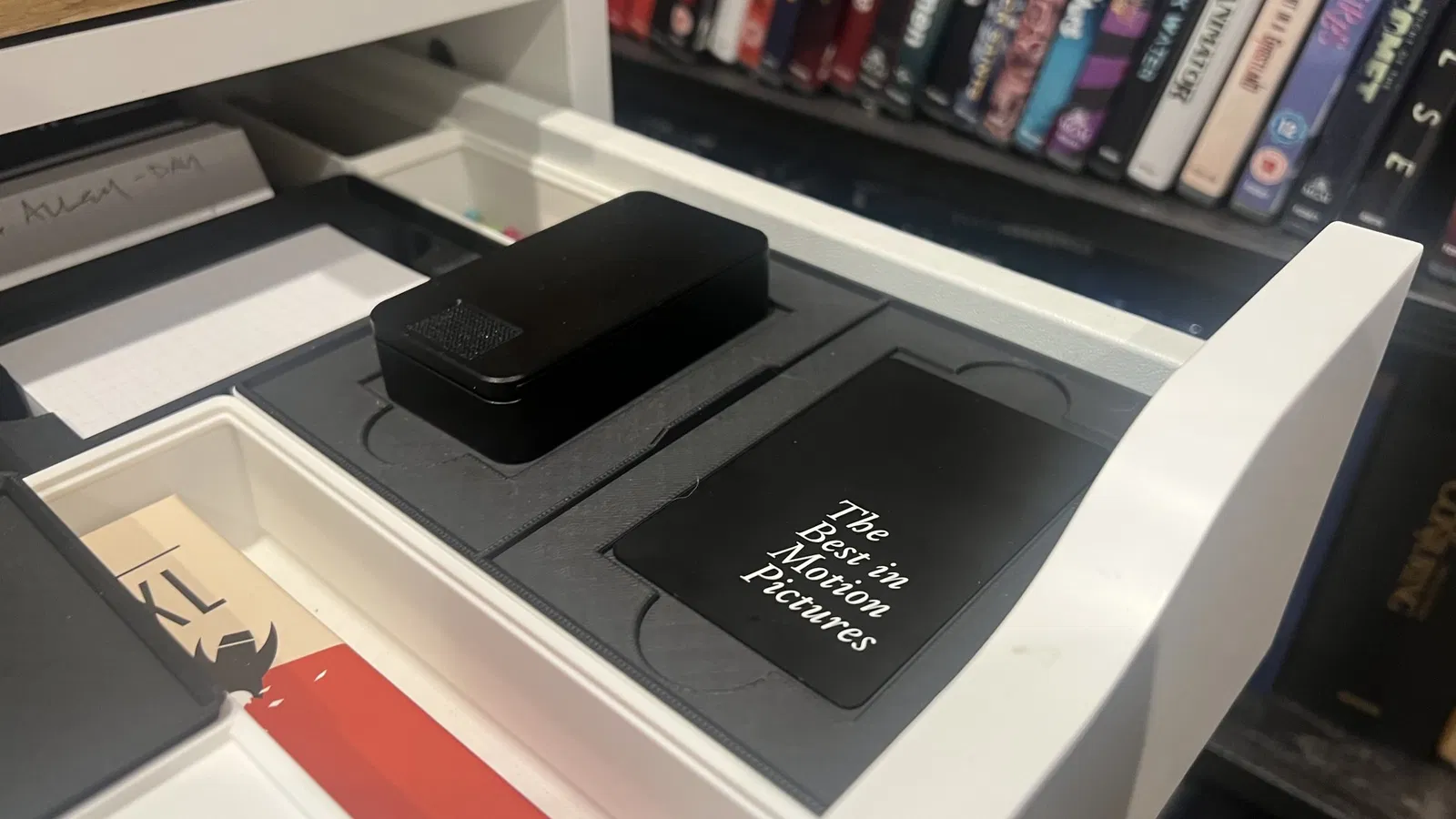 Một nắp lưới 3x4 với các hốc cho thẻ Guild hoặc thẻ tín dụng và một hốc nhỏ hơn cho một hộp thuốc Ikagai nhỏ.