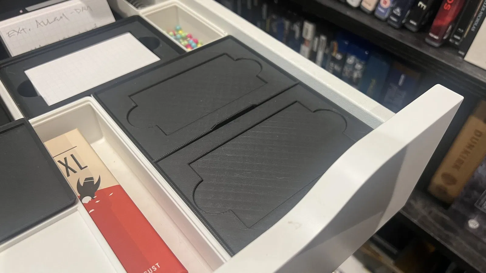 Nắp Gridfinity 3x4 với ngăn thẻ guild và hộp thuốc Ikagai