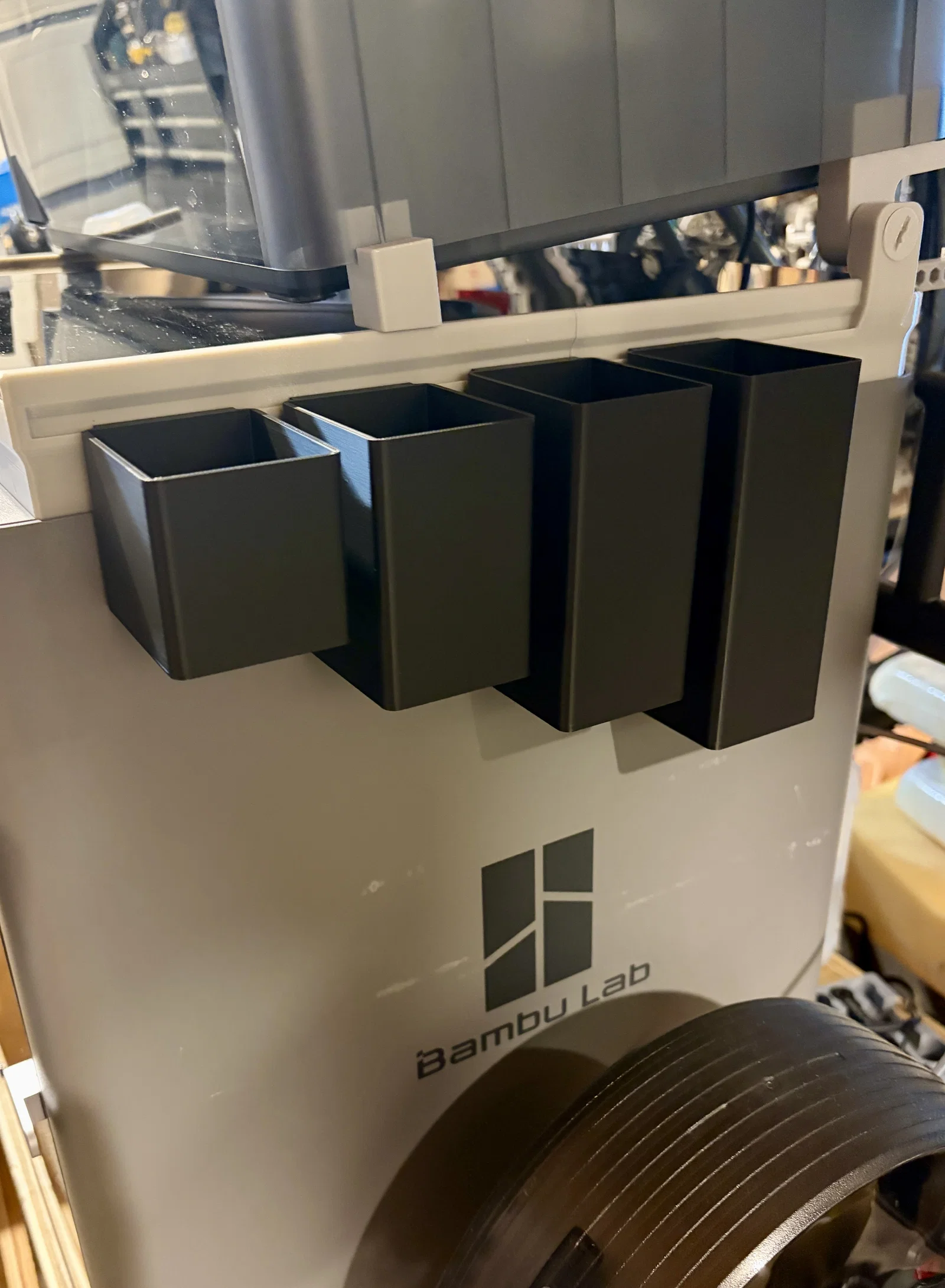 Giữ góc làm việc gọn gàng với bộ bốn hộp chứa đồ gắn bên hông máy in Bambu. Thiết kế module linh hoạt, dễ dàng in và lắp đặt để sắp xếp dụng cụ, phụ kiện hiệu quả cho quy trình in 3D của bạn.