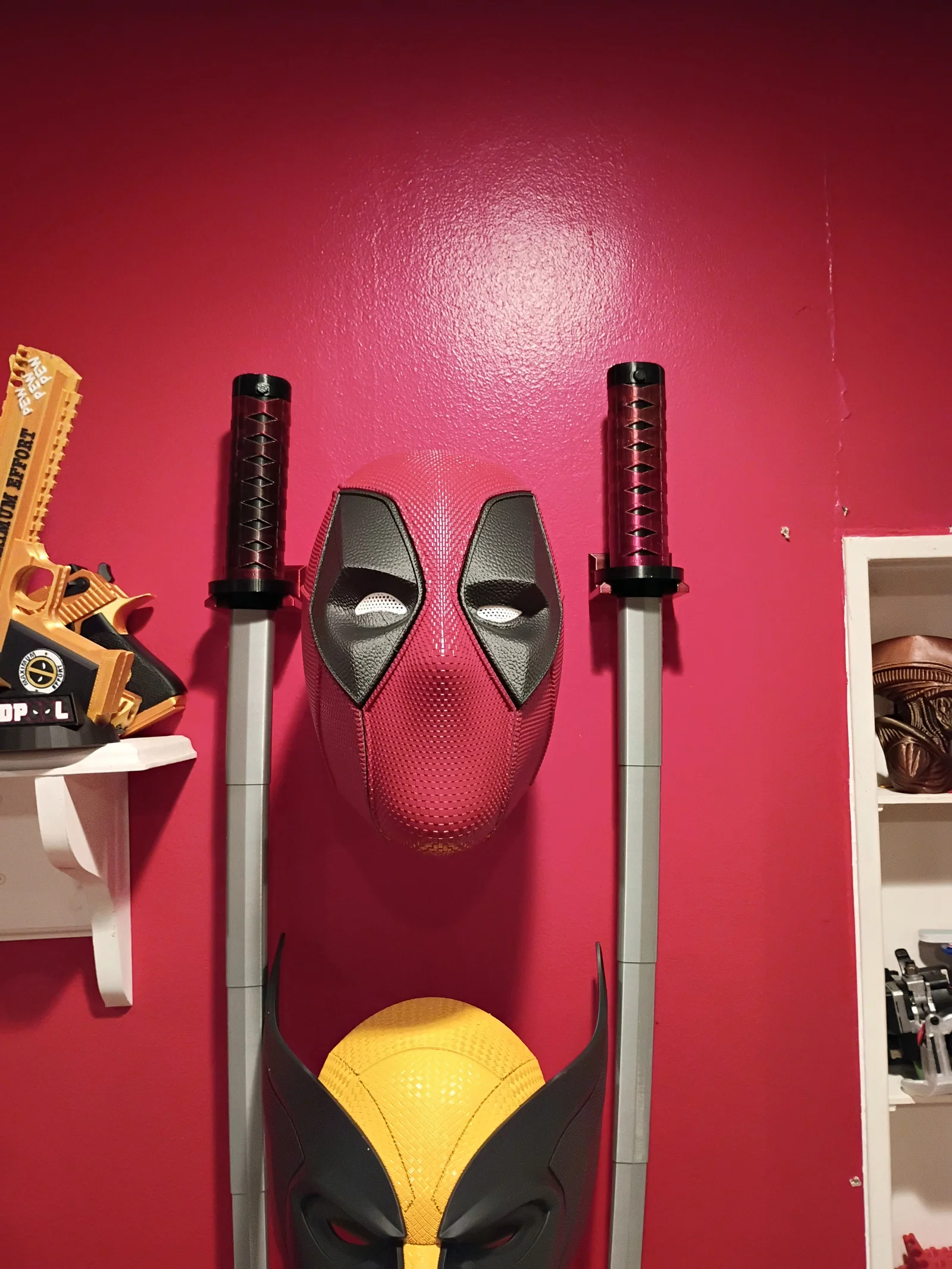 Nếu bạn là một tín đồ của văn hóa Nhật Bản hoặc đơn giản là một fan hâm mộ của Deadpool, chắc hẳn bạn sẽ có những món mô hình kiếm Katana trưng bày trong góc làm việc. Thay vì để chúng nằm bừa bãi, chiếc giá treo tường này là giải pháp cực kỳ đơn giản và hiệu quả để giúp không gian của bạn trông gọn gàng, chuyên nghiệp hơn hẳn. Thiết kế của giá treo tập trung vào sự tối giản, giúp tôn lên vẻ đẹp của thanh kiếm mà không làm rối mắt người nhìn khi gắn trên tường.