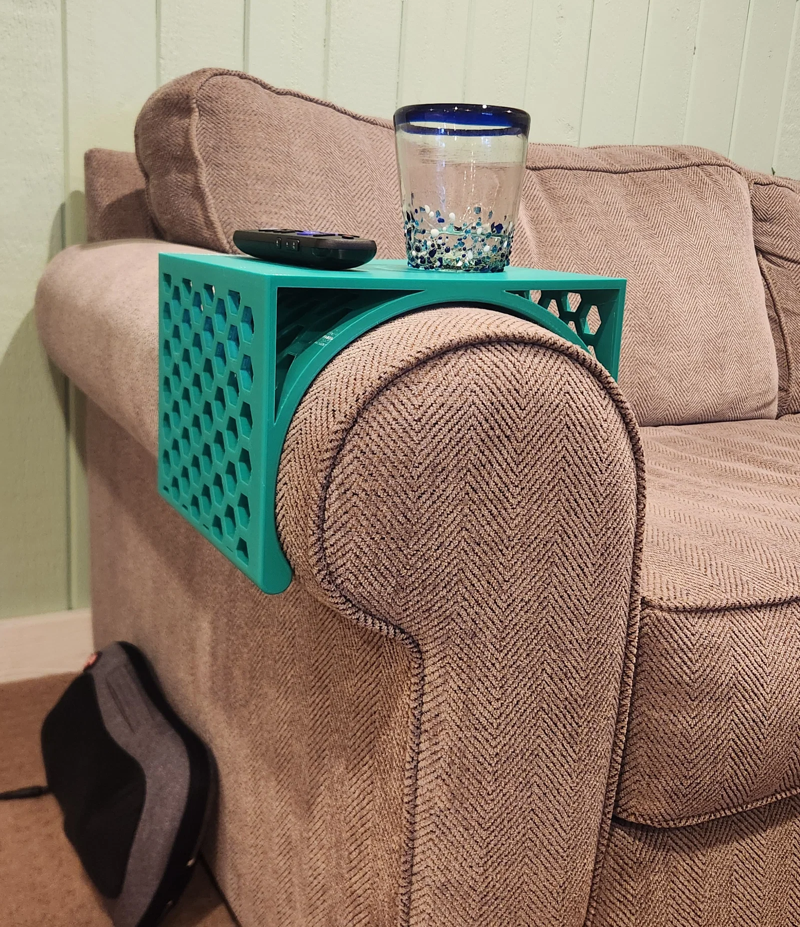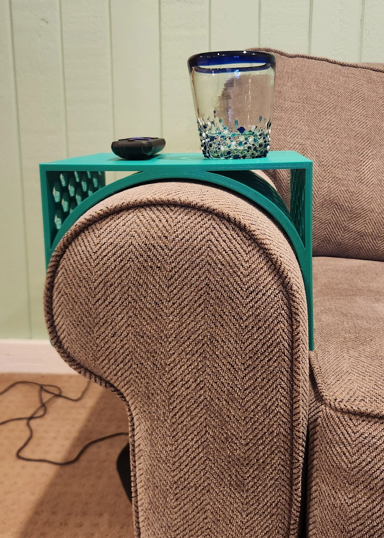 Chiếc khay để tay vịn chắc chắn dành cho các loại ghế sofa có phần tay vịn bo cong. Với họa tiết hình lục giác hiện đại, sản phẩm này giúp bạn có thêm chỗ để đồ tiện lợi ngay trên ghế. Lưu ý in nghiêng để có kết quả đẹp nhất.