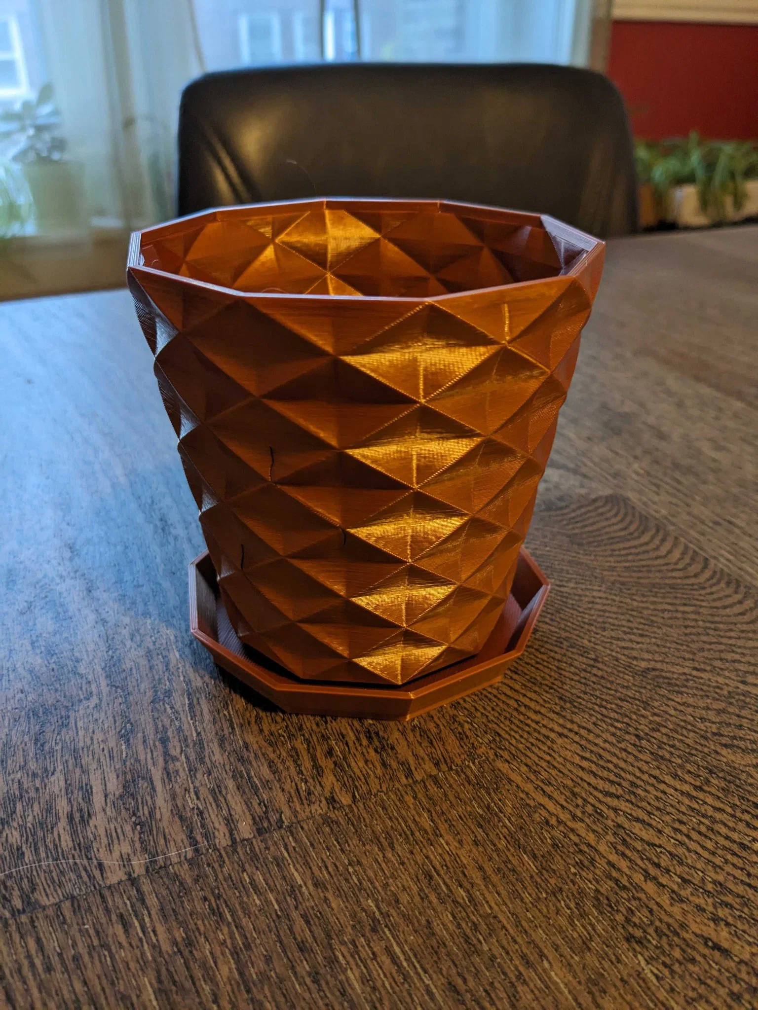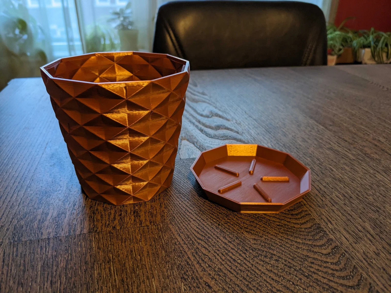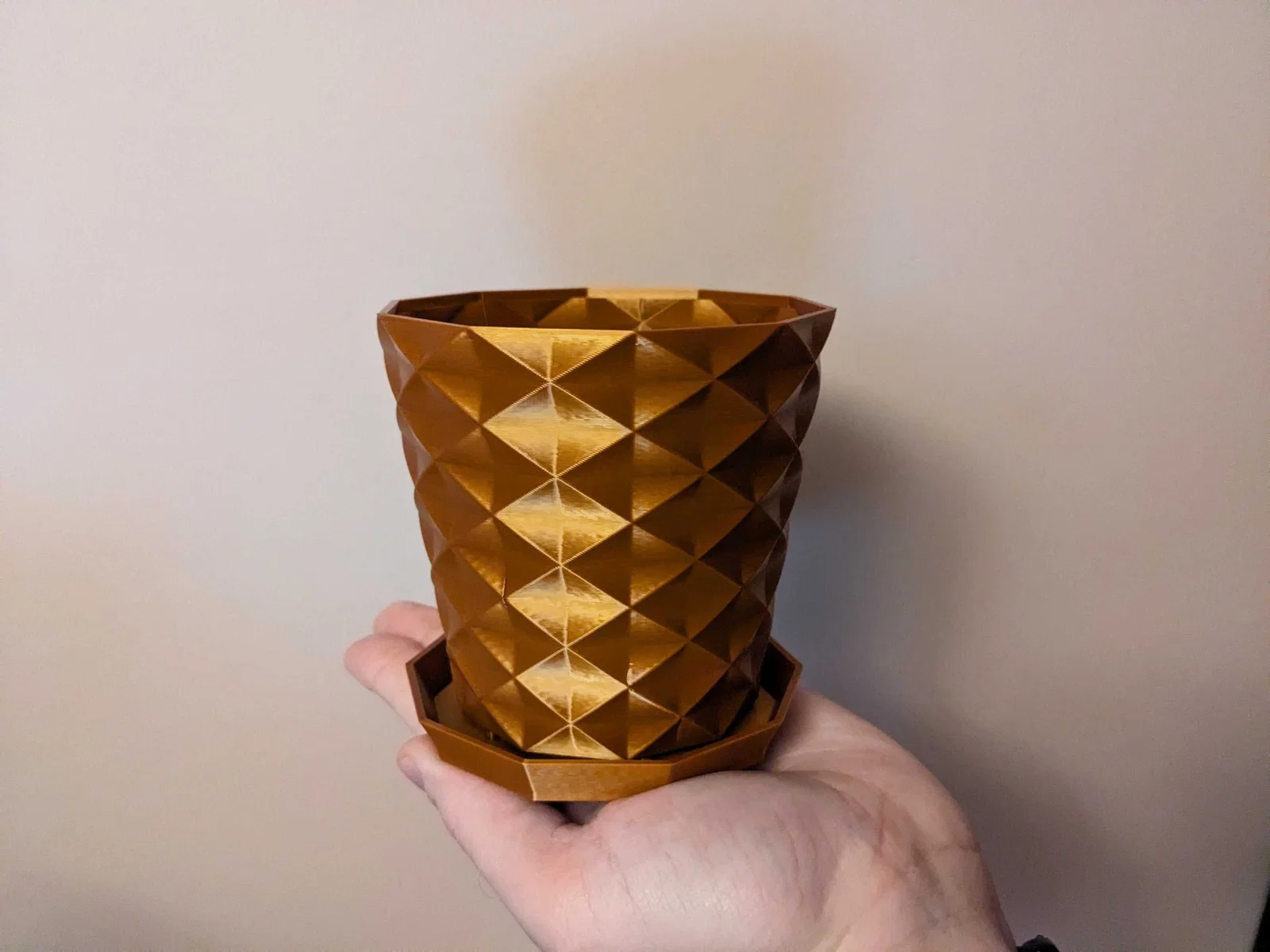 Bình hoa nhỏ đơn giản với lỗ thoát nước và khay nhỏ giọt.