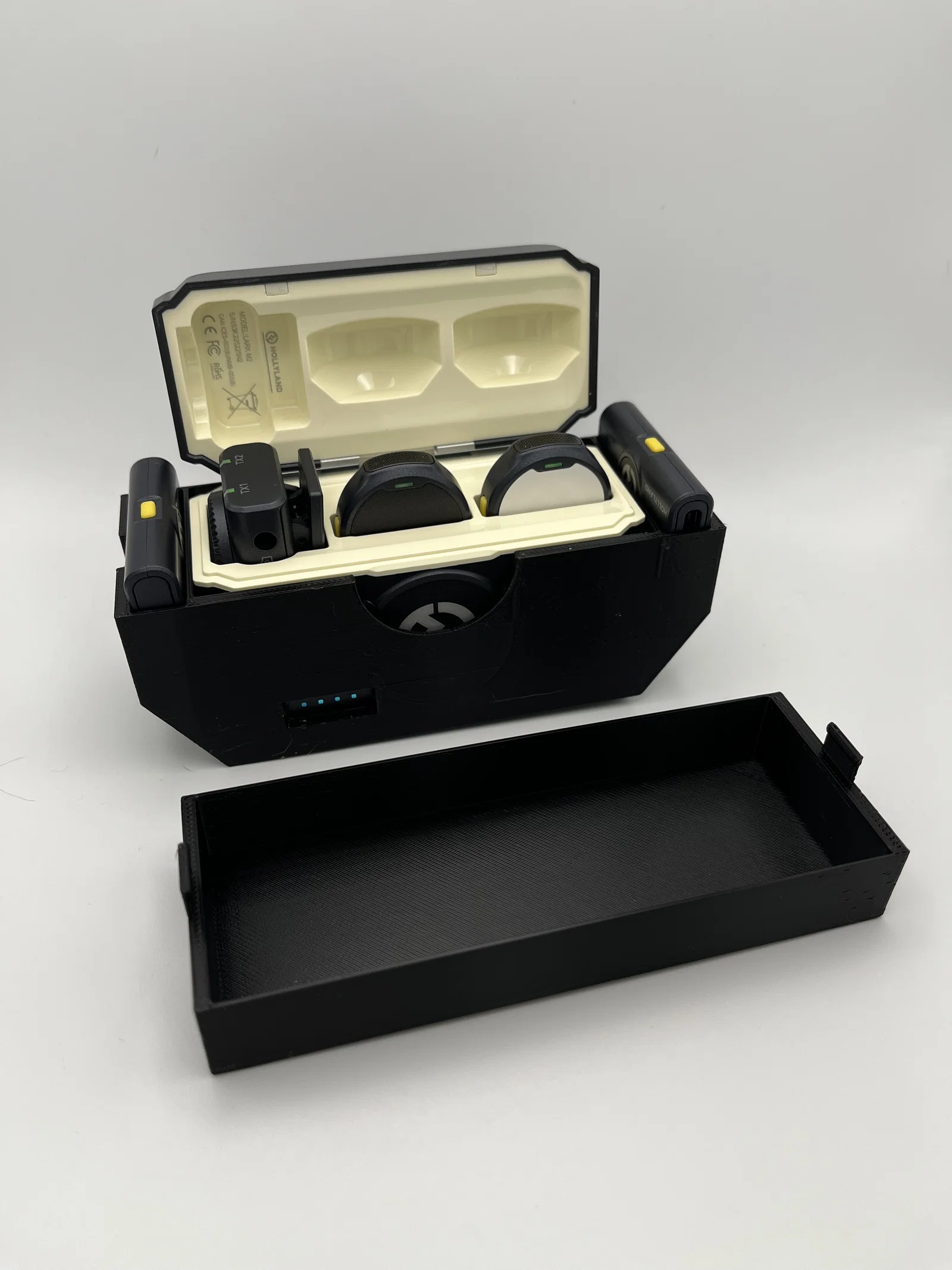 Mình đang dùng bộ mic không dây Hollyland Lark M2 Combo và thấy rất bực mình vì mấy cái receiver cho điện thoại cứ bị thất lạc trong túi đựng do kích thước quá nhỏ. Mình đã thử tìm trên mạng và thấy mẫu của Alko, nhưng dung sai lại quá lỏng và không có nắp đậy nên thiết bị rất dễ rơi ra ngoài khi bị dốc ngược. Ngoài ra, phần thành hộp cũng khá dày, chiếm nhiều diện tích trong túi đựng.