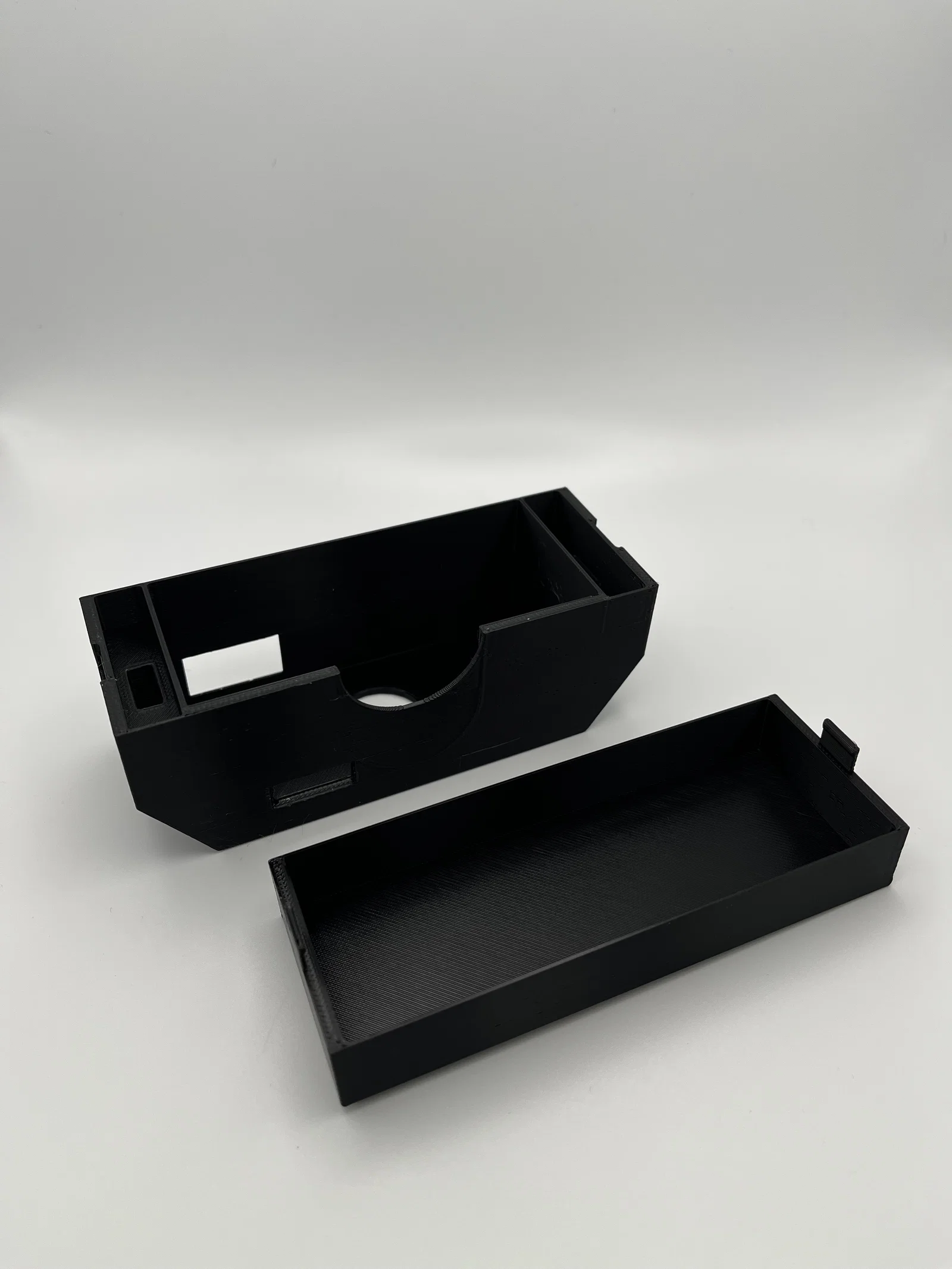 Mình đã lấy ý tưởng thiết kế tổng thể của họ và cải tiến lại cho phù hợp với nhu cầu của mình: làm thành hộp mỏng hơn, dung sai chặt hơn một chút để giữ thiết bị chắc chắn. Mình cũng đã thêm một cái nắp có chốt cài để bạn có thể thoải mái bỏ vào túi mà không lo thiết bị rơi rớt. Mình vẫn giữ lại phần cắt để lấy hộp ra dễ dàng, cũng như lỗ cho đèn báo sạc và cổng mở để bạn có thể sạc hộp qua cáp USB-C mà không cần tháo thiết bị ra ngoài.