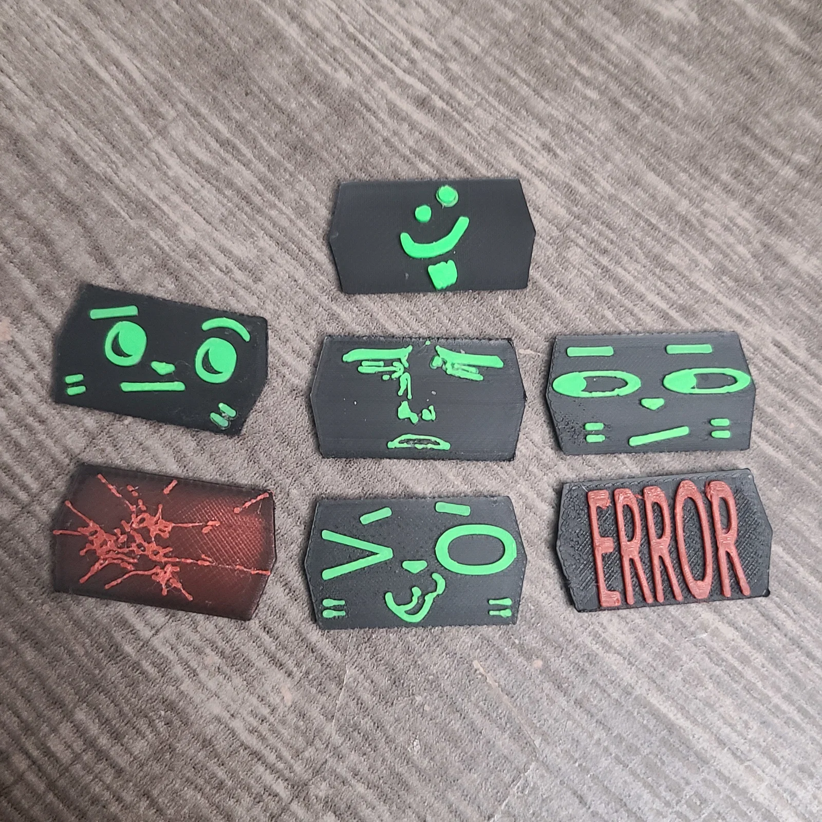 Thêm các tấm mặt mới đây! Về cơ bản thì đây chỉ là các khuôn mặt meme và 2 khuôn mặt "ngầu lòi" kiểu Edgy. CẢNH BÁO: mẫu màn hình nứt in không được đẹp lắm, mình sẽ làm lại nó sau. Nó chỉ là file SVG chuyển đổi từ ảnh màn hình nứt có sẵn thôi. Ngoài ra còn bao gồm cả mặt 'fren' từ bản upload fren helm trước đó của mình.