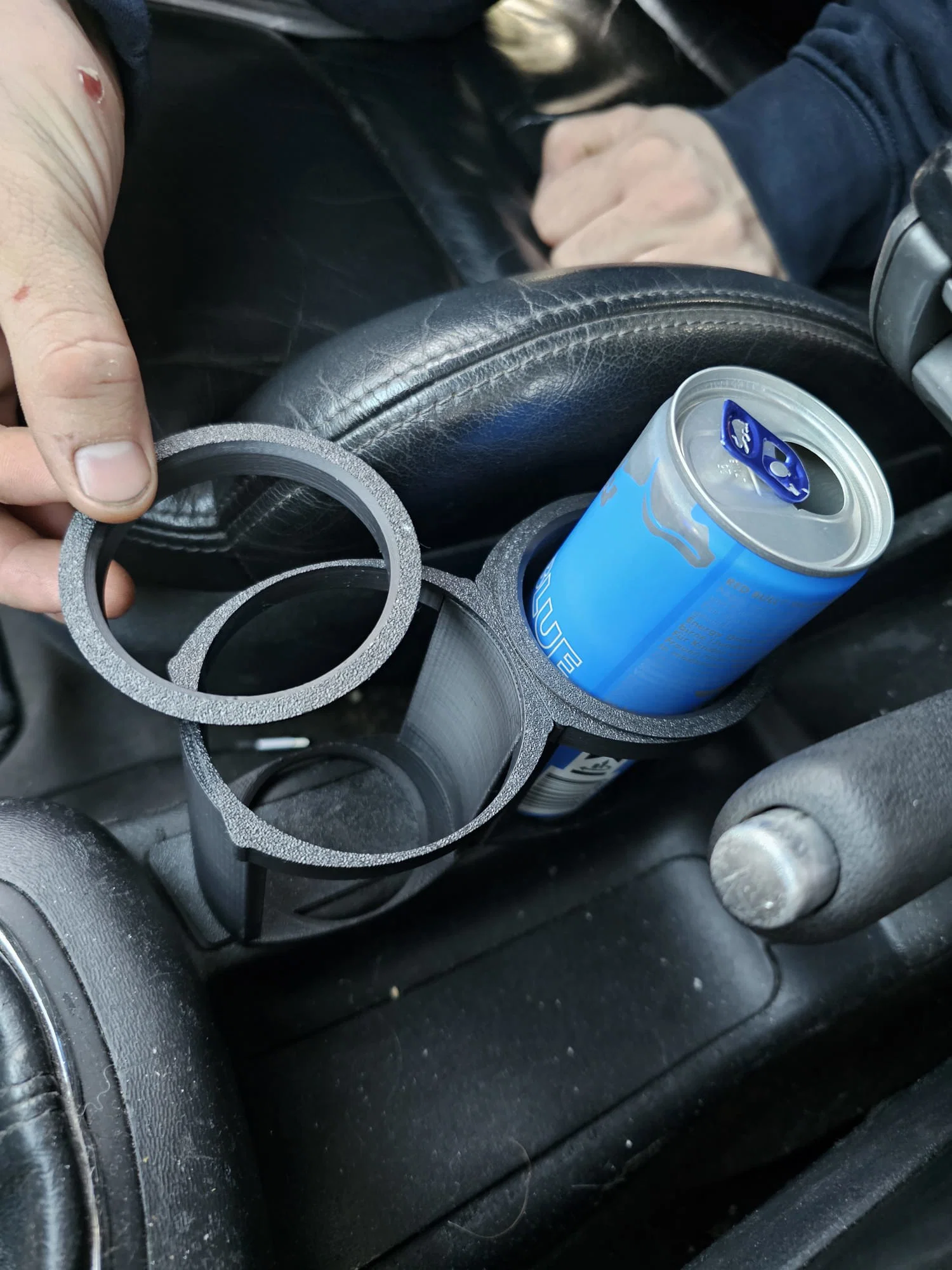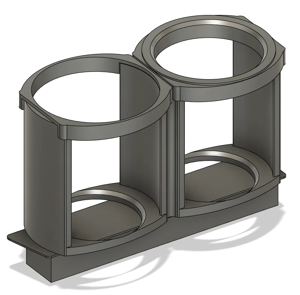 Giá đỡ cốc/lon thiết kế riêng cho bảng điều khiển trung tâm xe Audi A3 8L, hỗ trợ vừa vặn các loại lon 0,5L và 0,33L. Sản phẩm cần 7 ốc M3x10mm và keo dán để lắp đặt. Khuyến khích in bằng nhựa ASA để chịu nhiệt tốt hơn trong xe.
