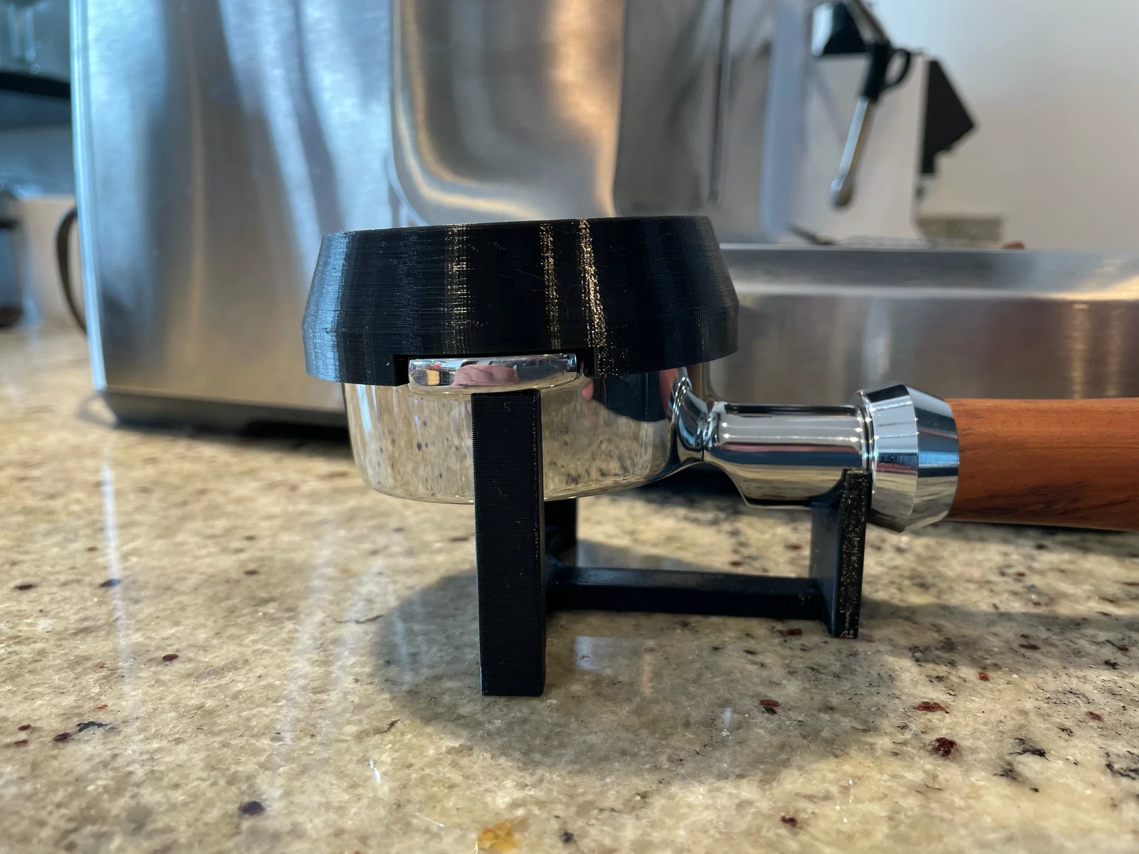 Phễu đong cà phê 58mm với thành phễu cao 15mm. Mình thấy chiều cao 15mm là vừa đủ để tránh bị rơi vãi cà phê ra ngoài trong khi vẫn dễ dàng tán đều bột, lại không bị vướng khi đặt dưới máy xay. Các khe hở được thiết kế để vừa với hầu hết các loại portafilter phổ biến. Nếu của bạn không vừa, cứ nhắn mình biết để mình chỉnh lại thông số nhé. Mẹo khi in: Hãy in ngược phễu và bật chế độ thành tường mỏng (thin walls) để phần gờ bên trong in ra chuẩn xác và khớp chặt vào giỏ lọc. Mô hình này được thiết kế theo dạng tham số (parametric) nên bạn hoàn toàn có thể điều chỉnh đường kính hoặc chiều cao tùy ý. Bạn có thể xem toàn bộ thiết kế tại OnShape.