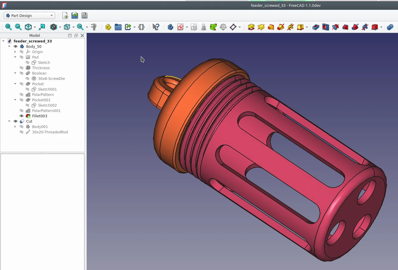 Bạn là một người đam mê câu cá và đang tìm kiếm giải pháp hiệu quả để đưa mồi xả xuống vị trí câu? Mẫu lồng đựng mồi (fishing feeder) in 3D này chính là phụ kiện không thể thiếu trong bộ đồ nghề của bạn. Với thiết kế nhỏ gọn, tích hợp cơ chế nắp vặn ren chắc chắn, sản phẩm giúp cố định mồi câu một cách khoa học, đảm bảo mồi giữ được độ bền khi quăng cần và chỉ tan ra đúng lúc khi nằm dưới mặt nước. Thiết kế thông minh với nhiều khe thoáng giúp mùi vị của mồi phát tán tối đa, dễ dàng thu hút các loài cá mục tiêu. Bạn có thể tự tay in món đồ này bằng nhựa PETG bền bỉ để sử dụng bền lâu trong mọi điều kiện thời tiết. Tải ngay file STL và FreeCAD để trải nghiệm sự tiện lợi của phụ kiện DIY chuyên nghiệp này ngay hôm nay.