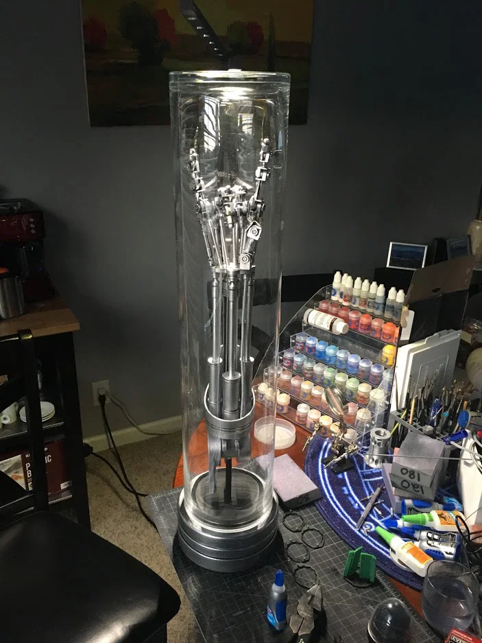Do khó tìm được loại kính phù hợp, mình đã tự thiết kế mẫu đế này để các bạn tự in tại nhà. Đi kèm hướng dẫn căn chỉnh kích thước và mẹo xử lý bề mặt để kính khớp hoàn hảo với đế, giúp mô hình cánh tay Terminator của bạn trông chuyên nghiệp hơn.