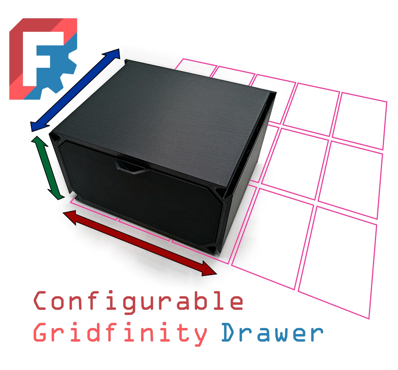Hộc kéo tương thích với Gridfinity, cho phép bạn tùy chỉnh kích thước theo ý thích. Tặng kèm file nguồn FreeCAD để bạn tự thiết kế chiều rộng, chiều sâu và chiều cao cho hộc kéo của riêng mình.
