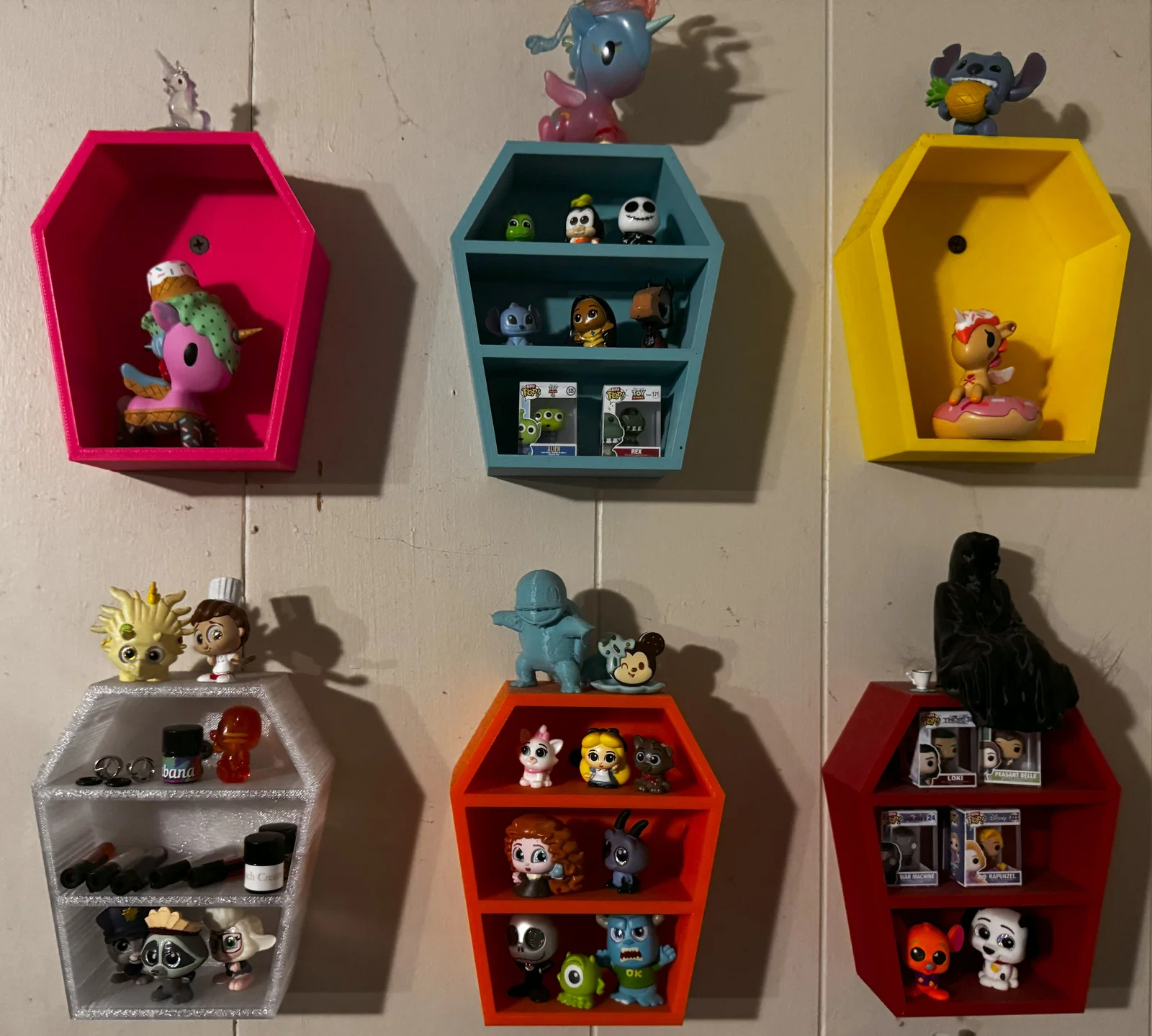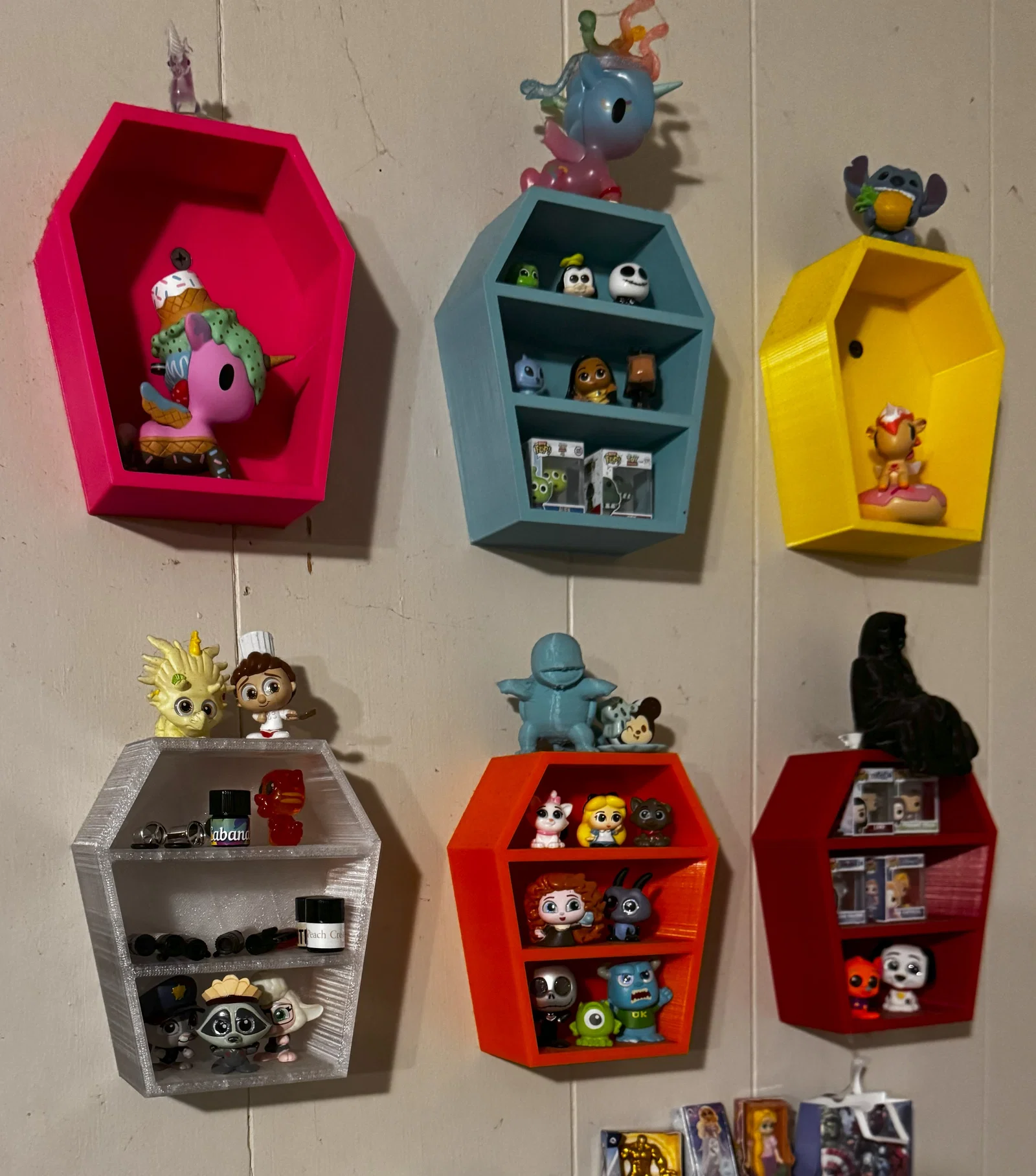 Bạn đang tìm kiếm một giải pháp trang trí nhà cửa vừa cá tính, vừa giúp tối ưu hóa không gian lưu trữ cho những món đồ sưu tầm nhỏ nhắn? Mẫu thiết kế kệ trưng bày hình quan tài với các ngăn kệ bên trong này chắc chắn sẽ làm góc phòng của bạn trở nên cực kỳ ấn tượng. Với hình dáng độc đáo, đây không chỉ là vật dụng đựng đồ thông thường mà còn là món phụ kiện decor mang đậm phong cách gothic đầy nghệ thuật, giúp tôn lên vẻ đẹp cho bộ sưu tập mô hình, nhân vật hoạt hình hoặc các món đồ trang sức nhỏ xinh của bạn.
