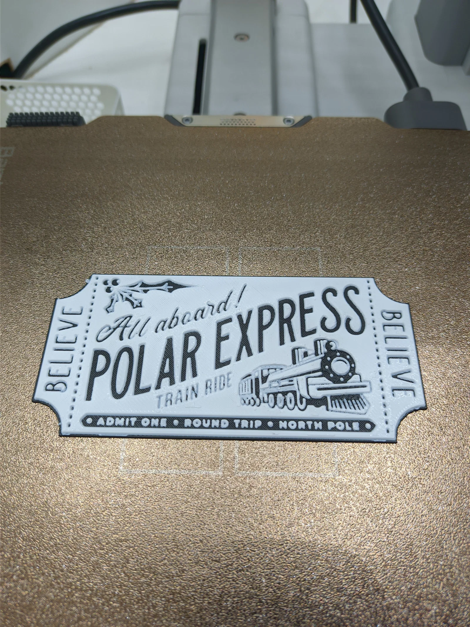 Vé tàu Polar Express chuẩn xịn! Tấm vé với hiệu ứng cũ kỹ này làm nổi bật hình ảnh con tàu Polar Express cực kỳ đáng yêu. Đây là món đồ không thể thiếu dành cho các fan cứng của bộ phim Giáng sinh kinh điển này.