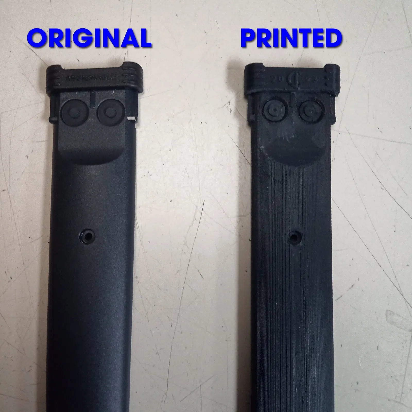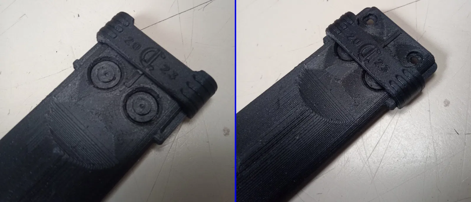 Bộ phận gốc có một chút cong mà không thể dễ dàng tái tạo trên máy in 3D. Phiên bản thay thế này in phẳng, nhưng vẫn sẽ vừa khít với một chút uốn cong. Khi nó được vặn chặt xuống, sự khác biệt là không thể nhận thấy.