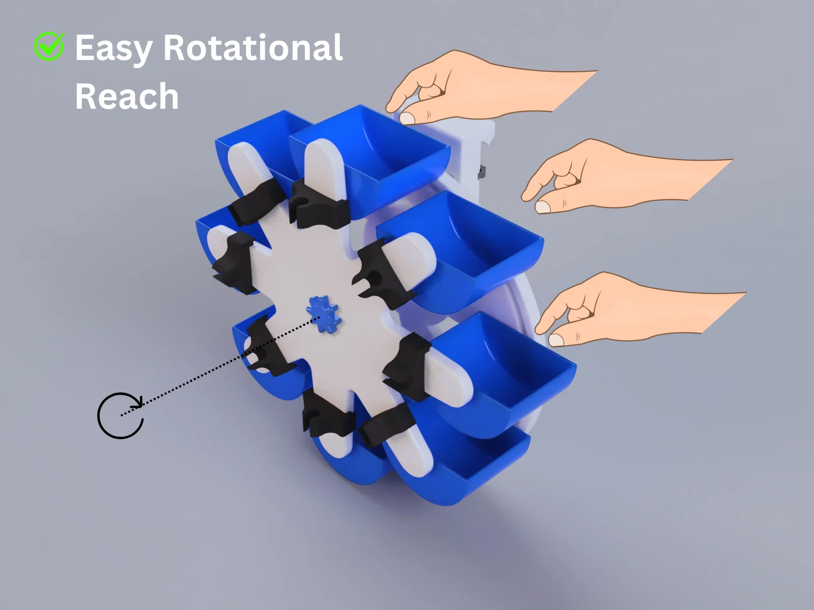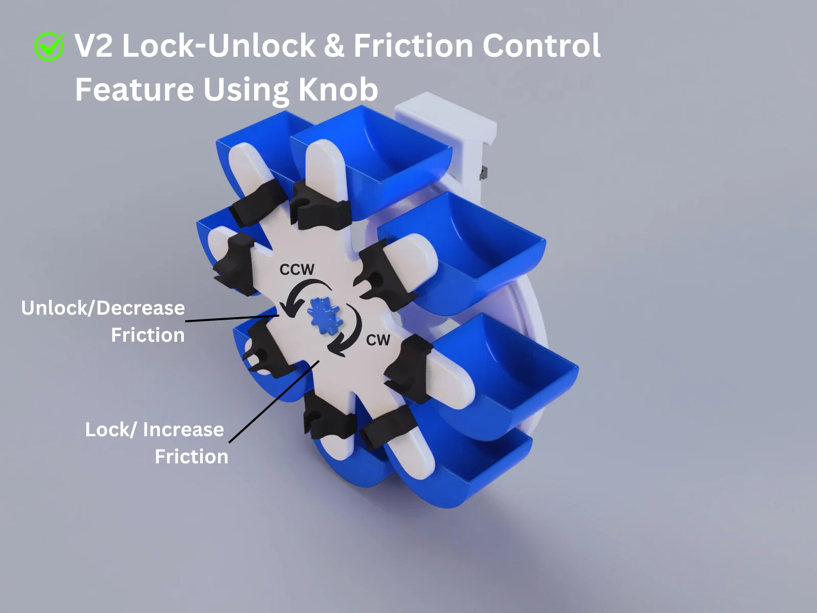 - Xoay ngược chiều kim đồng hồ (CCW): Giảm ma sát, cho phép xoay mượt mà và không hạn chế, giúp dễ dàng tiếp cận các ngăn chứa khác nhau.