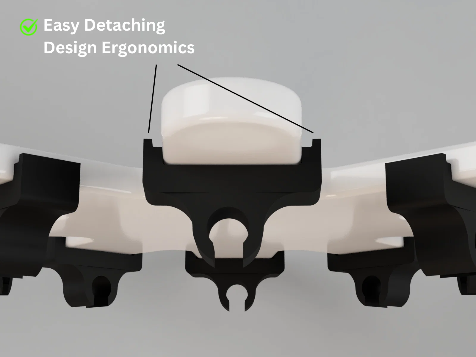 - Hệ thống snap-fit cho phép thay thế giá đỡ dễ dàng để phù hợp với từng loại dụng cụ cụ thể.