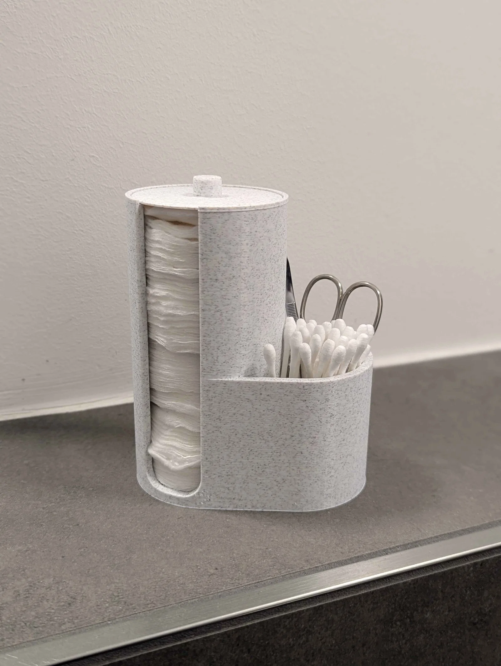 Bạn đang tìm kiếm một giải pháp ngăn nắp cho khu vực bàn trang điểm hoặc phòng tắm của mình? Mẫu 3D "Cotton Pad Holder" này chính là người bạn đồng hành hoàn hảo giúp bạn quản lý các món đồ mỹ phẩm nhỏ gọn một cách khoa học. Với thiết kế tích hợp 2 trong 1, sản phẩm không chỉ giúp bạn giữ sạch bông tẩy trang mà còn tạo thêm không gian lưu trữ cho các vật dụng cá nhân khác như bông tăm, nhíp hoặc kéo tỉa lông mày.