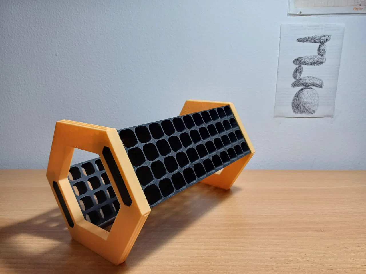 Mẫu thiết kế khay để bàn tiện lợi với 44 ngăn cắm bút, sở hữu phần hông hình lục giác độc đáo giúp góc làm việc của bạn trở nên gọn gàng và ngăn nắp hơn. File thiết kế tối ưu, dễ dàng in ấn bằng máy in 3D với cấu trúc bền bỉ.