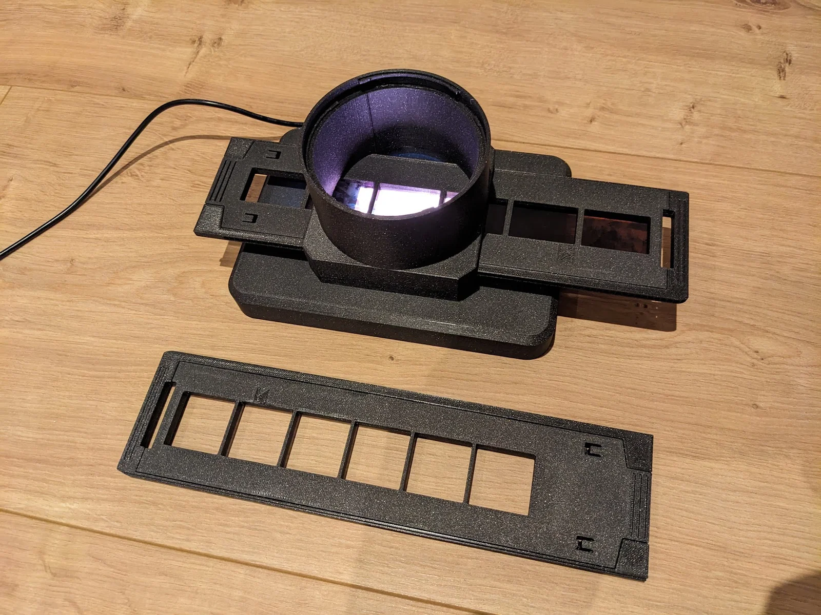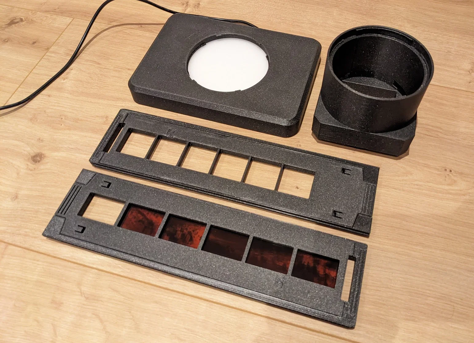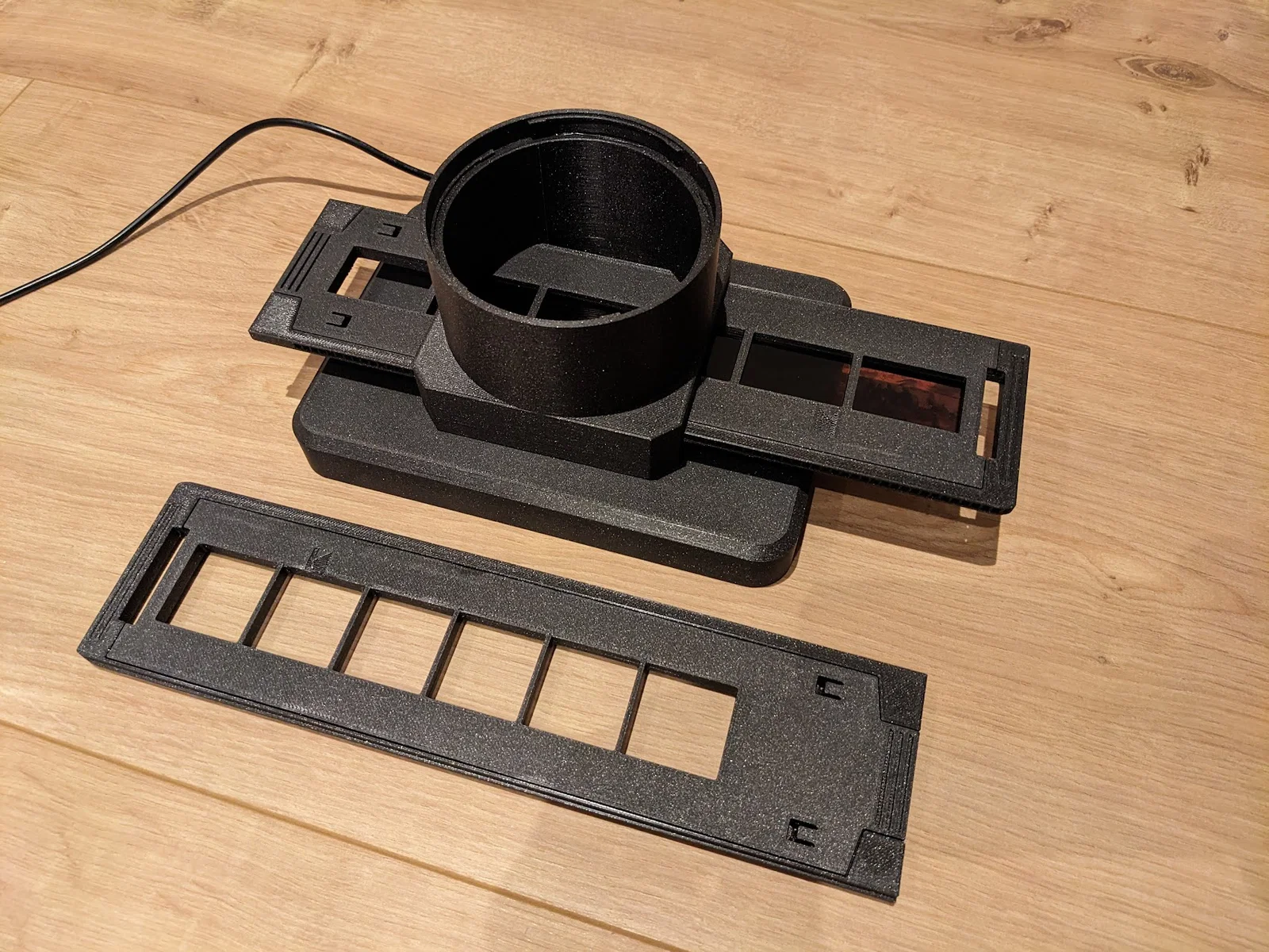 Mình cần một cách để scan phim 126 cinematic, loại phim này có chiều cao tương đương phim 35mm nhưng khung hình cao hơn và có tỷ lệ vuông. Mình đang dùng máy scan Minolta Dimage Dual III AF-2840 và lần thử đầu tiên là tự chế khay giữ phim 126 dựa trên khay 35mm gốc. Tiếc là thất bại vì vùng ảnh vượt quá chiều rộng cảm biến của máy scan, dẫn đến bị mất viền! Sau khi tốn quá nhiều công sức làm khay 126, mình quyết định chế luôn một bộ chuyển đổi gắn thẳng vào loa che nắng (lens hood) của ống kính máy DSLR để dùng với khay này. Một lợi ích khi làm cho nó tương thích với khay Minolta là mình có thể tận dụng luôn các khay 35mm gốc mà mình đang có. Sau đó mình nghĩ, biết đâu nhiều người cũng đang cần khay Minolta để sửa máy scan cũ, nên mình gửi kèm cả mẫu khay 35mm luôn. Và tất nhiên, cả hai khay này đều dùng tốt trên máy scan gốc nhé!