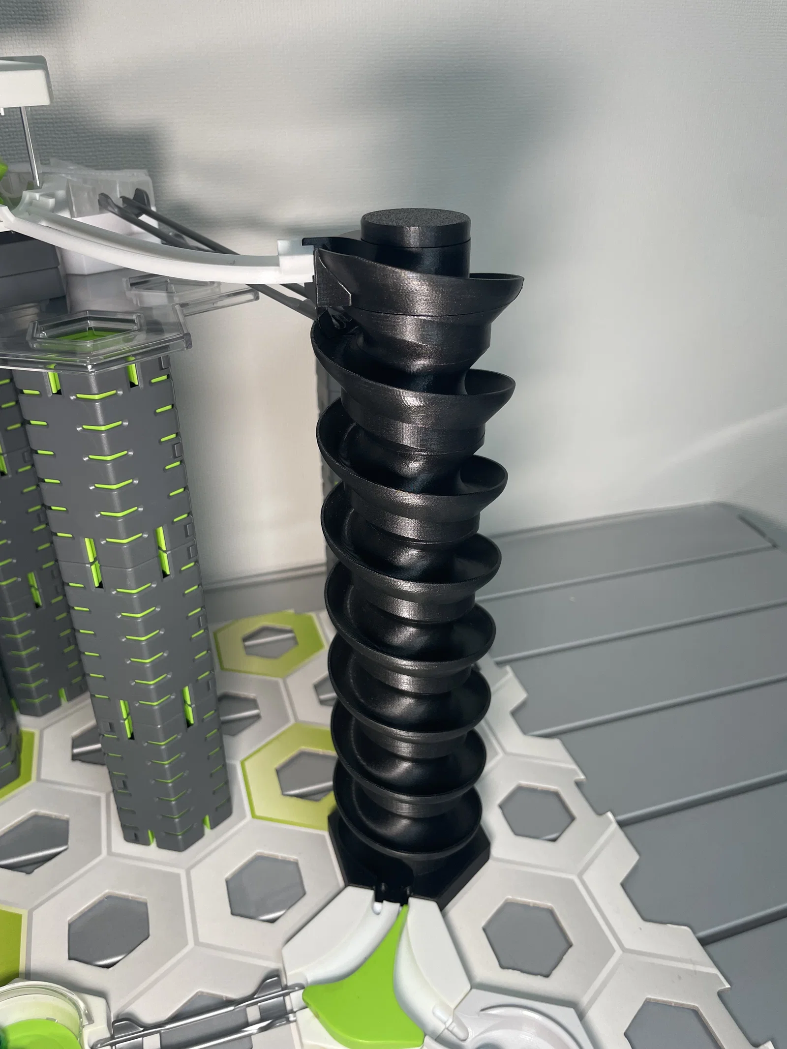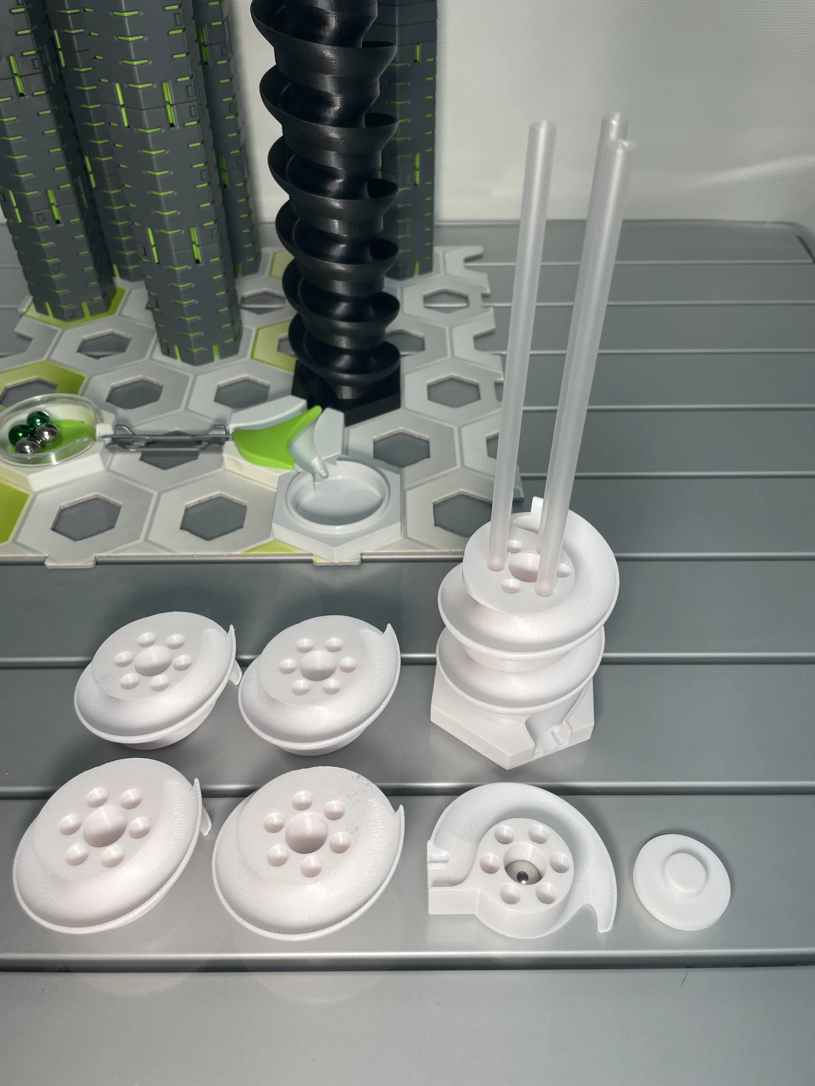 Mô hình Spiral Fall cực cao dành cho Gravitrax. Thiết kế có thể điều chỉnh độ cao linh hoạt, sử dụng ống hút 6mm làm trục trụ vô cùng tiện lợi. Hỗ trợ thêm các đầu dẫn tùy chọn để viên bi lăn mượt mà hơn.