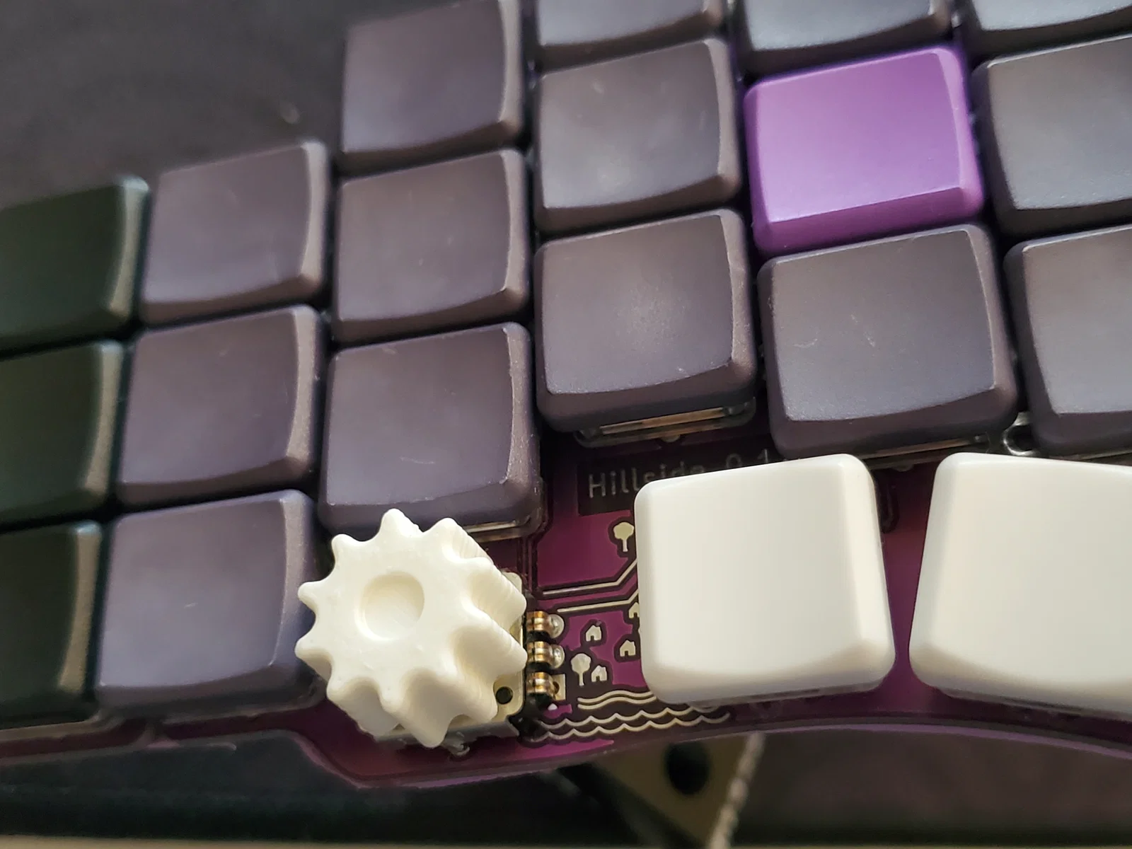 Thiết kế này nằm gọn trong khoảng cách của một phím đơn trên bàn phím chuẩn choc, giúp bạn dùng được trên các loại board như Hillside, nơi mà encoder được lắp thay thế cho switch choc.