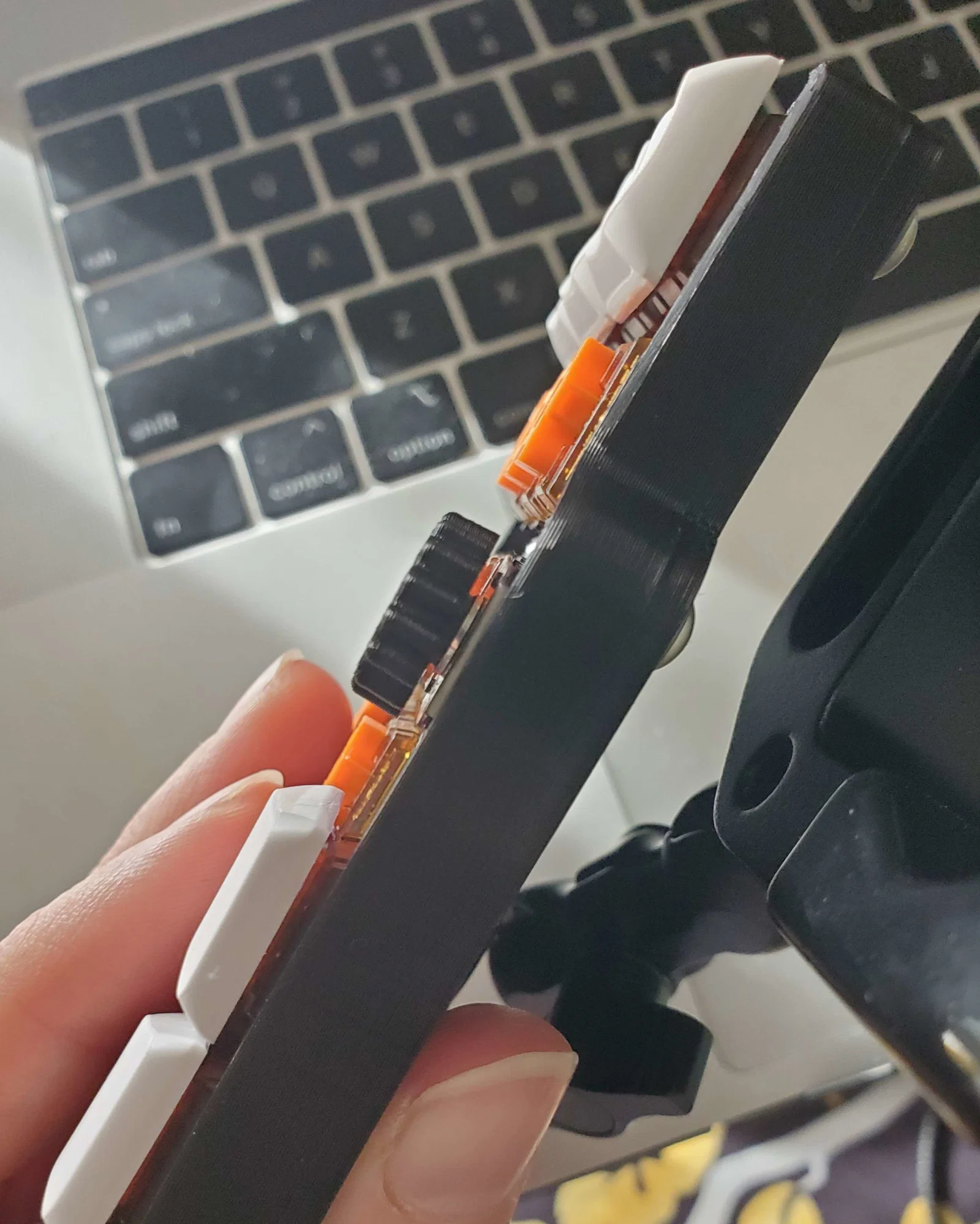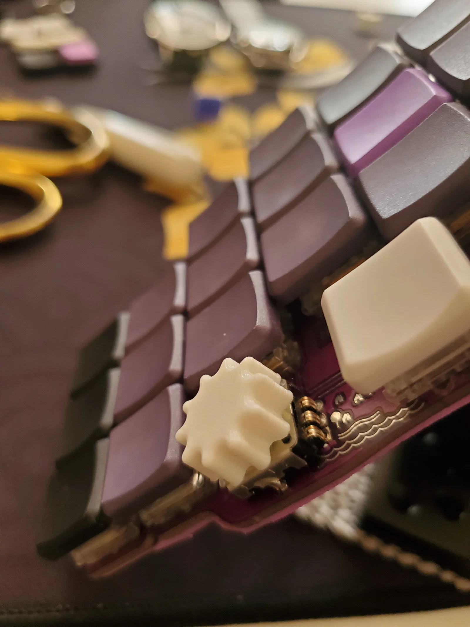 Biến thể thứ ba có chiều cao thấp hơn cả một switch choc kèm keycap, mình thiết kế riêng cho bạn Majyk Oyster trên server Discord của splitkb.com.
