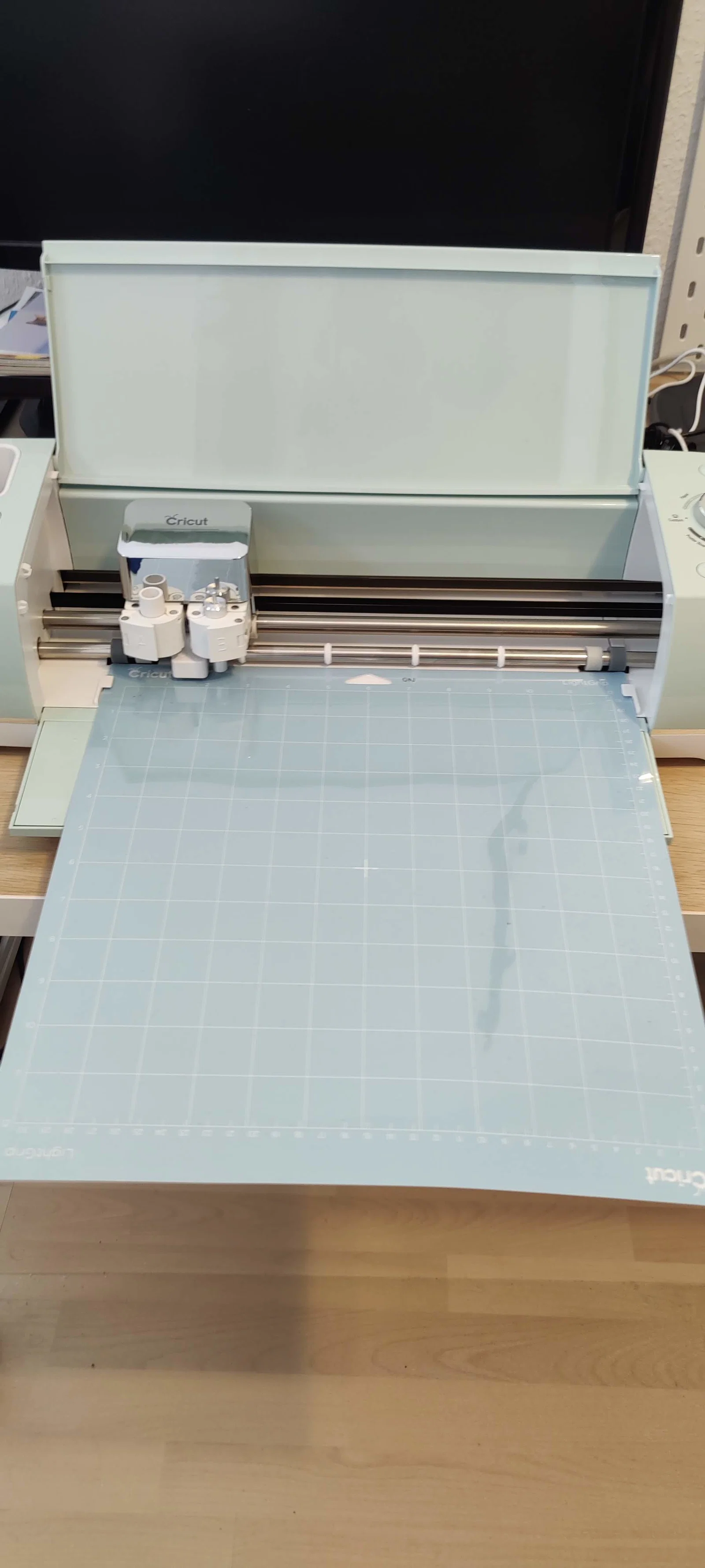 Phần mở rộng tấm thảm (Mat Extension) cho máy Cricut Explore Air 2, thiết kế này có thể tháo rời và cất gọn trong ngăn kéo bên phải của máy.