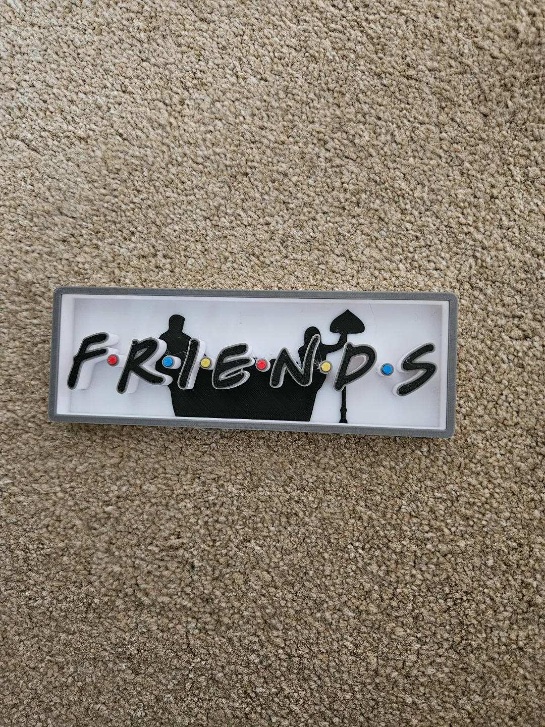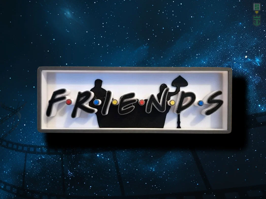 Bảng hiệu trang trí phòng phim/rạp chiếu phim theo chủ đề series truyền hình Friends. Bạn có thể tự do thay đổi màu sắc theo sở thích cá nhân thông qua hệ thống AMS (Bambu) hoặc thiết lập cấu hình trên máy in hiện tại của bạn.