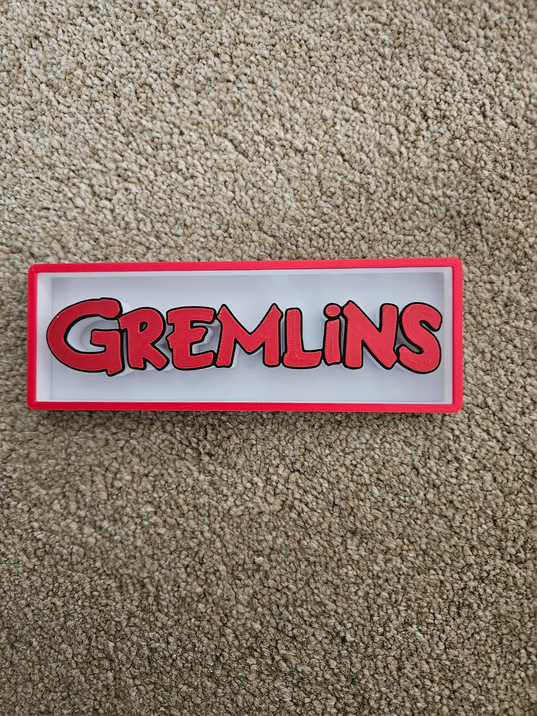 Bảng hiệu phòng phim / Cinema theo chủ đề Gremlins, bạn có thể tự do phối màu tùy ý thông qua hệ thống AMS (Bambu) hoặc thiết lập cấu hình trên máy in hiện tại của mình.