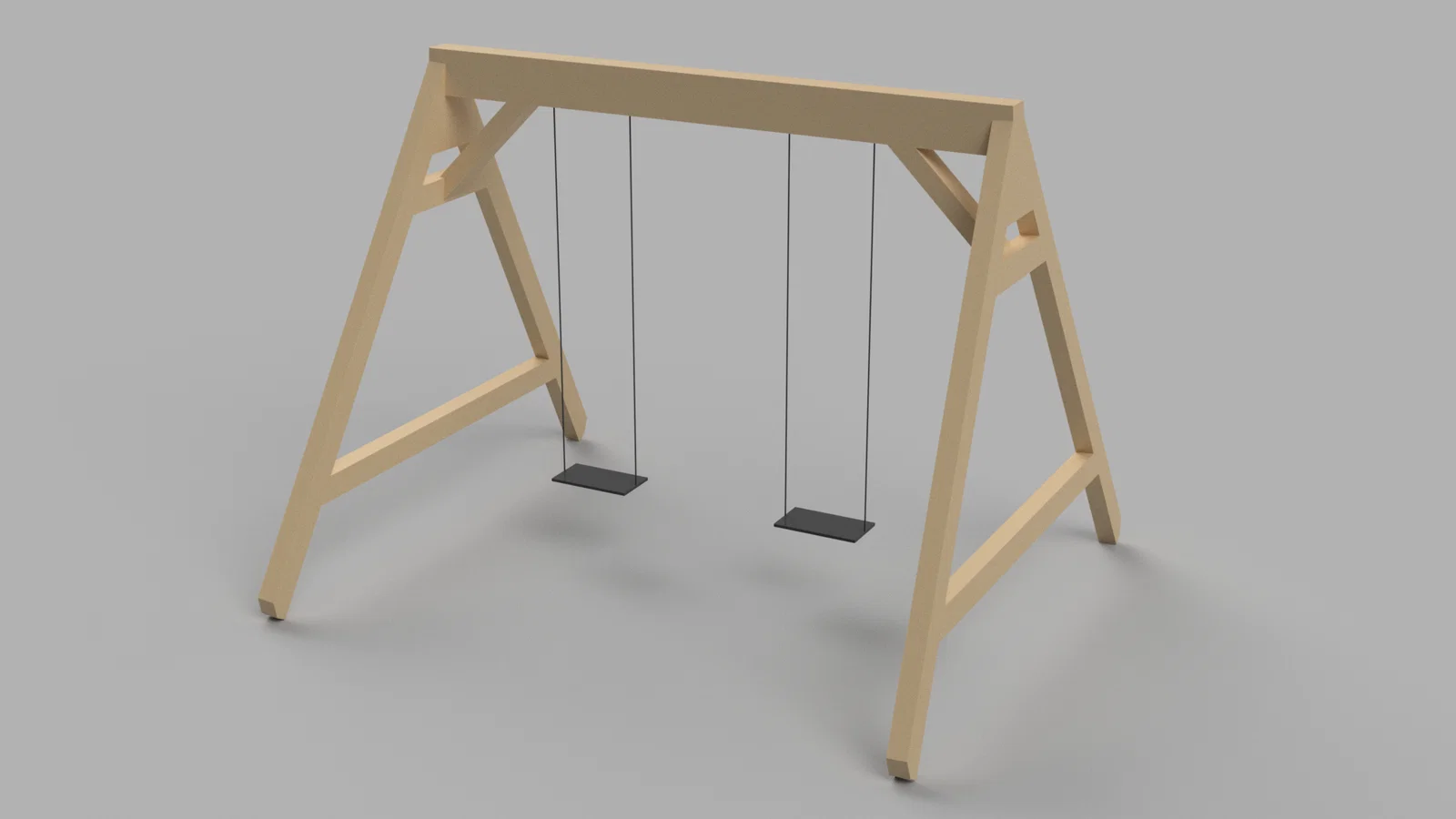 Mô hình 3D của chiếc xích đu gỗ ngoài đời thực mà tôi đã tự tay thiết kế cho các con mình. Các chi tiết cần được dán lại và xử lý bề mặt để lắp ráp hoàn chỉnh. Lưu ý là sản phẩm không bao gồm phần ghế ngồi.