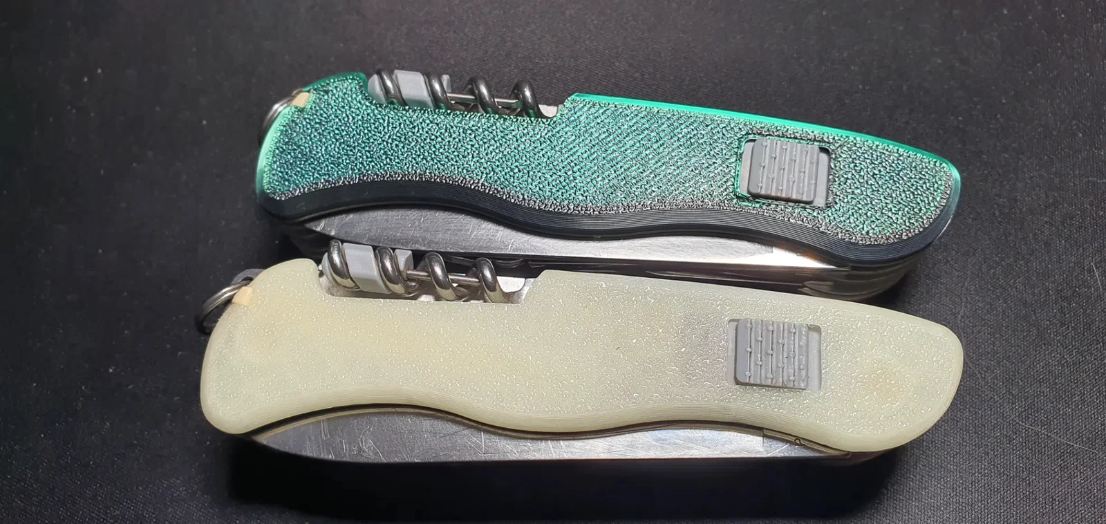 Sau khi đã thiết kế ốp tay cầm cho các dòng dao Victorinox 58mm và 91mm, giờ đây mình đã hoàn thiện phiên bản cho dòng 111mm. Do thiết kế có nhiều đường cong và được bổ sung thêm khe cắm bút bi nên đây là mẫu ốp phức tạp nhất mà mình từng thực hiện. Chúng hơi khác biệt so với hàng gốc ở chỗ logo lớn hơn một chút, các cạnh được vát phẳng thay vì bo tròn, và như đã đề cập, có thêm khe để bút bi. Điểm đặc biệt ở đây là mình đã tính toán để khe bút này vừa vặn mà không cần phải chỉnh sửa gì thêm trên cây bút, thậm chí bút còn nằm rất gọn gàng vào khuôn của ốp.