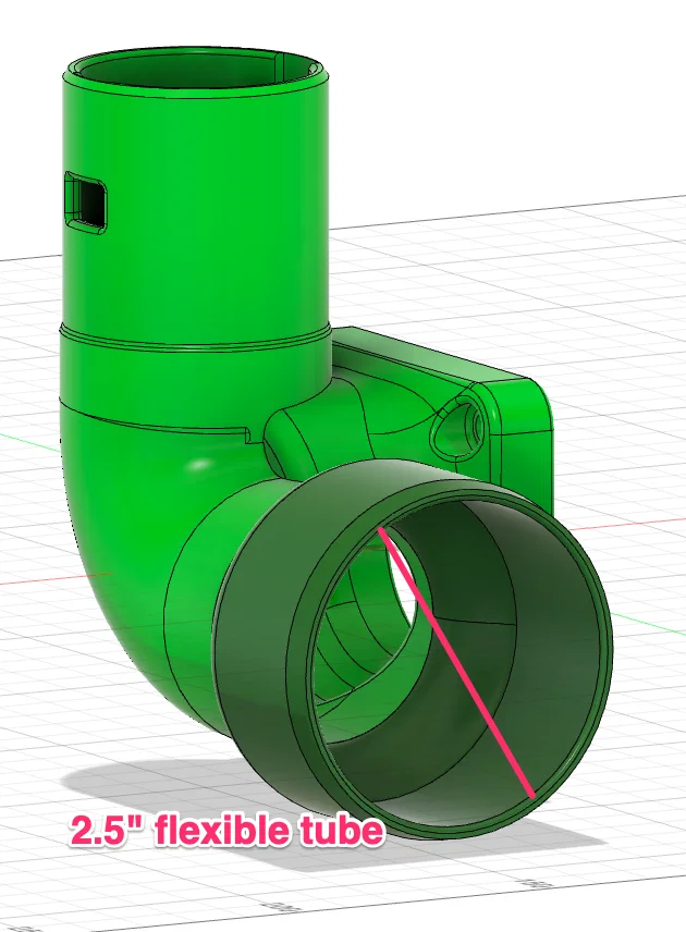 Bộ chuyển đổi hút bụi này thay thế hoàn toàn chi tiết gốc, tận dụng lại đoạn ống mềm và cung cấp một đầu nối 2.5 inch cho ống mềm, loại rất phổ biến trong các xưởng mộc, được đặt ở phía sau máy cưa.