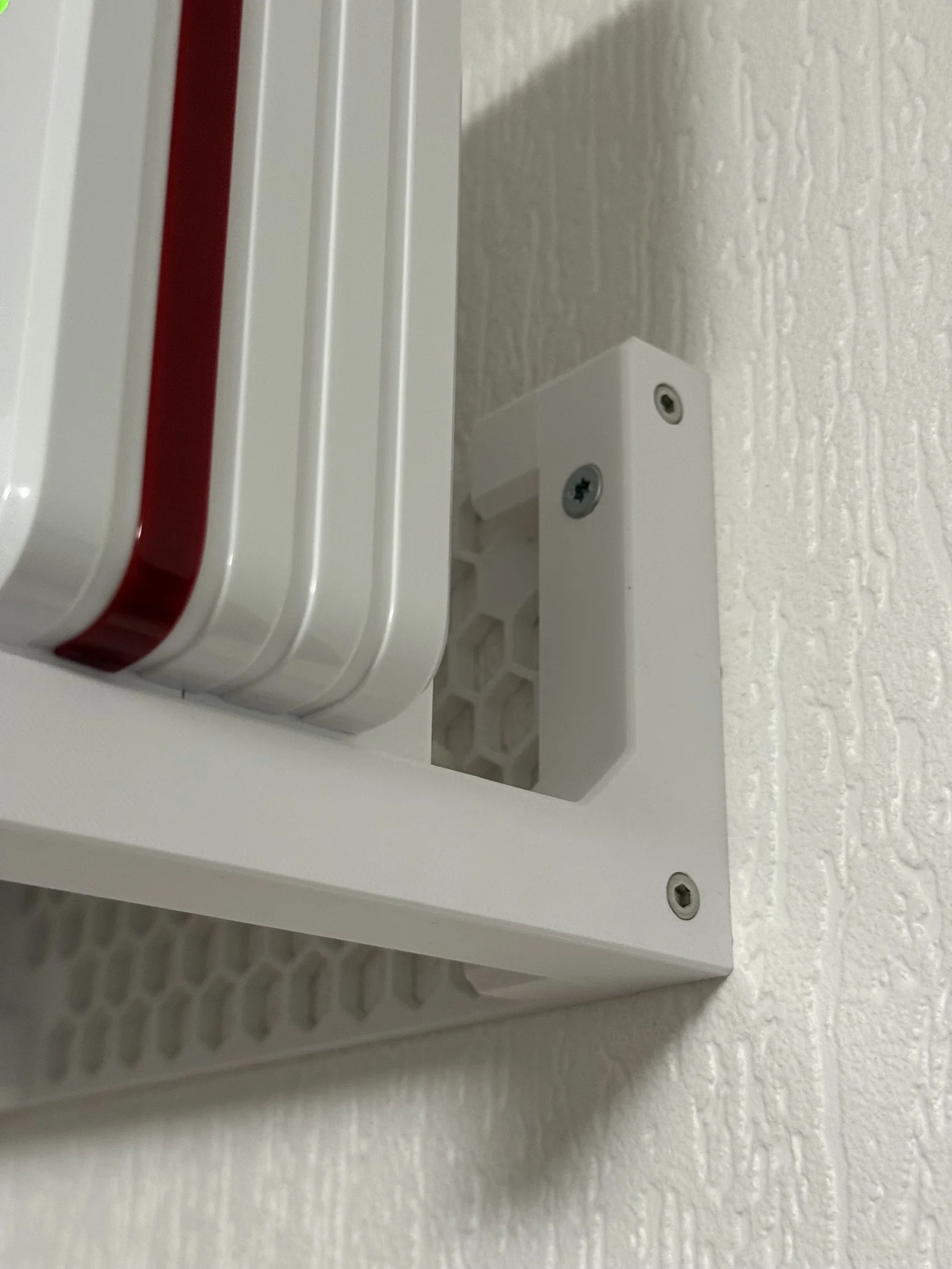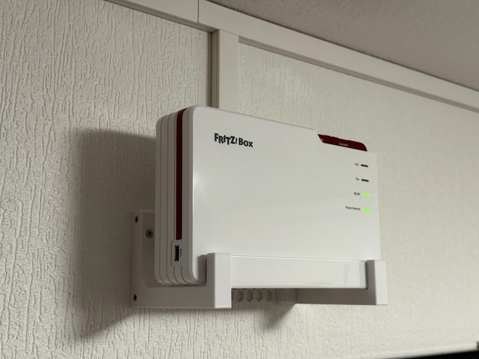 Giá treo tường cho FRITZ!Box 5690 Pro này là một phiên bản cải tiến, được thiết kế tập trung vào độ ổn định cao hơn và lắp đặt dễ dàng. Khác với bản gốc, mẫu này có thêm phần nối ở giữa để giữ các giá đỡ thẳng hàng hoàn hảo, không cần phải căn chỉnh riêng lẻ và chỉ cần hai vít bắt tường thay vì bốn. Các góc được bo vát (chamfers) để cải thiện hướng in và tăng độ chắc chắn, giảm thiểu nguy cơ tách lớp khi in đứng. Bạn nên in ở cạnh bên để chịu lực dọc theo các lớp in. Mình đã dùng thêm tree supports để giữ các chi tiết nhỏ ở phần chân giá đỡ.
