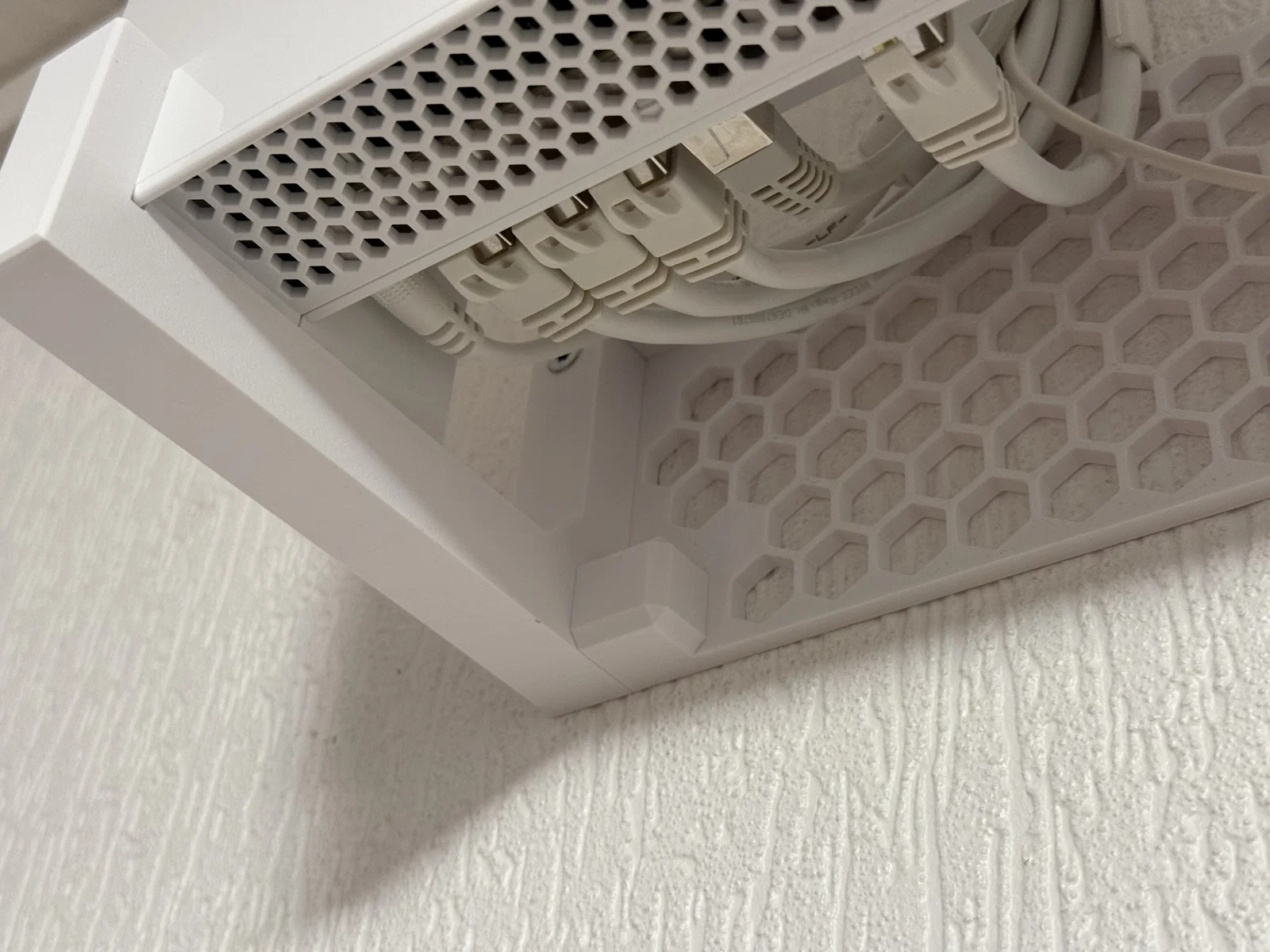 Giá treo sử dụng M4 heat set inserts và vít M4 x 30 để lắp ráp chắc chắn, tin cậy. Phía sau router vẫn còn dư dả không gian để bạn đi dây LAN và dây cáp quang gọn gàng.