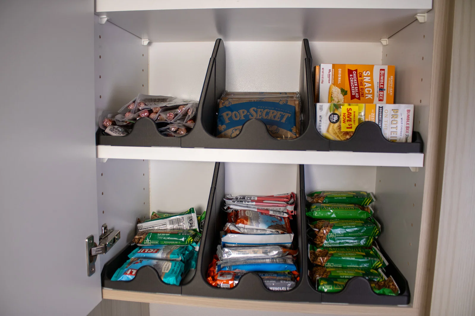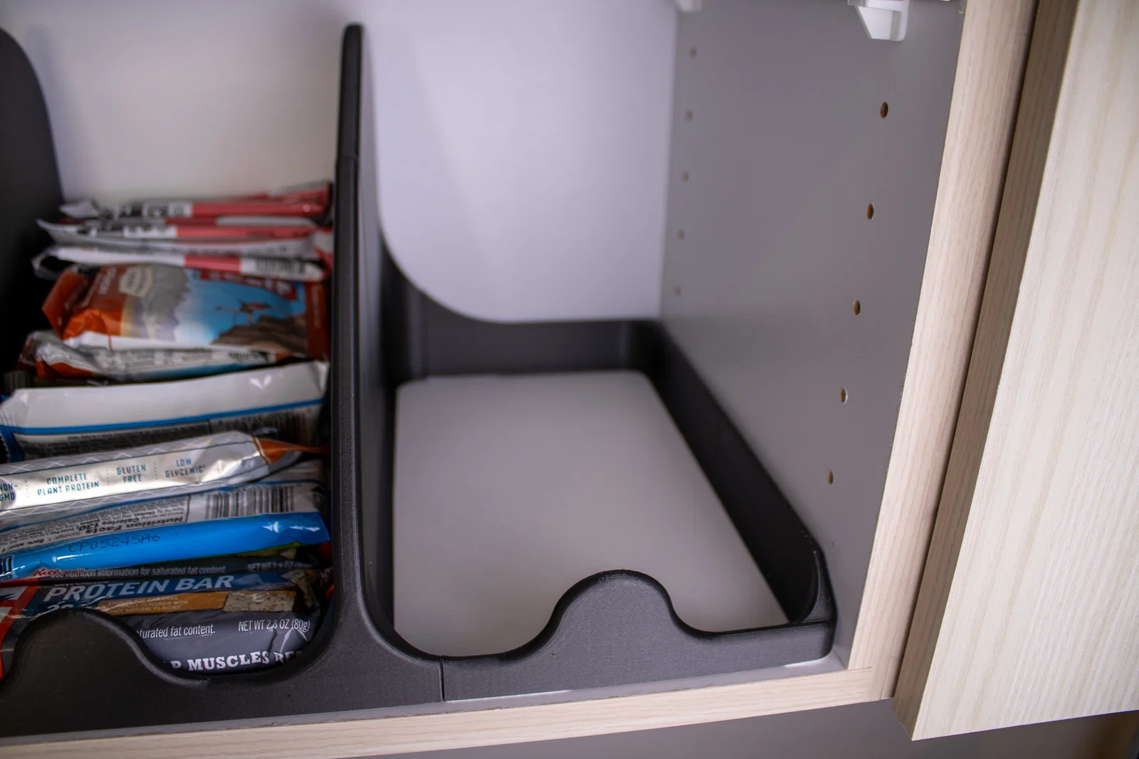 Mẫu này vừa vặn hoàn hảo với các loại thanh kẹo, bỏng ngô và đồ ăn nhẹ. Tuy nhiên vì nó được thiết kế riêng cho tủ bếp của mình, bạn hãy kiểm tra lại kích thước tủ nhà bạn trước nhé! Kích thước của khay là 500mm x 275mm.