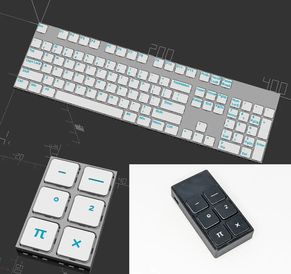 Mã OpenSCAD được bao gồm ở đây (genKeyboard.scad) có thể được sử dụng để tạo ra các bàn phím và bàn phím số tùy chỉnh với các bố trí tùy ý. Theo mặc định, các phím có kích thước 16mm×16mm, với khoảng cách 3mm nhưng bạn có thể ghi đè điều đó theo từng phím.