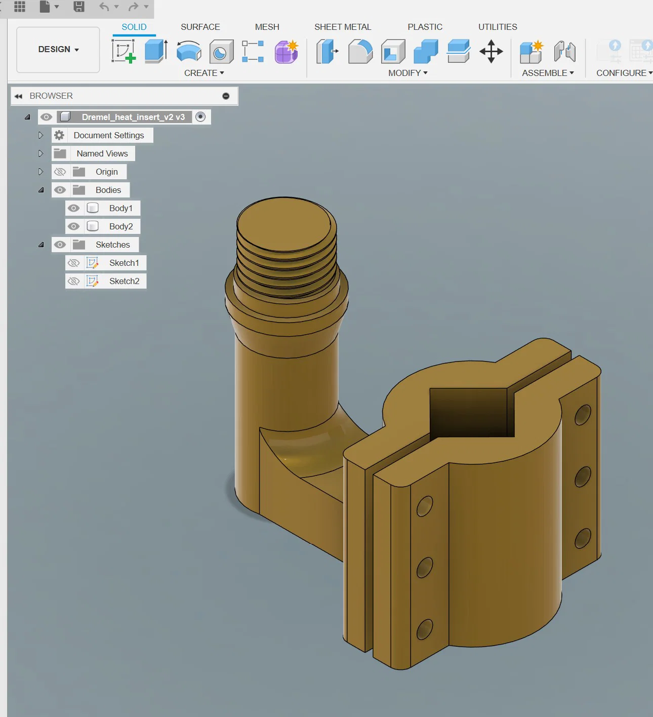 Adapter nhanh giúp gắn mỏ hàn (đường kính từ 14mm) lên giá đỡ Dremel để thao tác ép heat insert dễ dàng. Thiết kế tháo lắp linh hoạt, in bằng PETG với độ cứng cao, hỗ trợ tốt cho công việc chế tác của bạn.