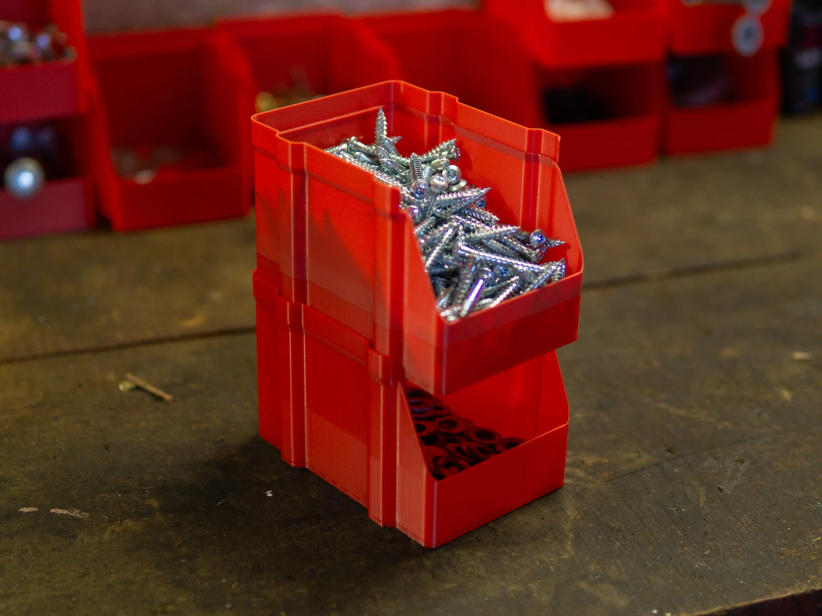 Sắp xếp lại xưởng làm việc của bạn với bộ khay chứa ốc vít chồng tầng thông minh. Thiết kế tối ưu giúp tiết kiệm nhựa, tiết kiệm diện tích bàn làm việc và cực kỳ linh hoạt cho các loại linh kiện nhỏ. Một giải pháp không thể thiếu cho mọi người đam mê DIY.