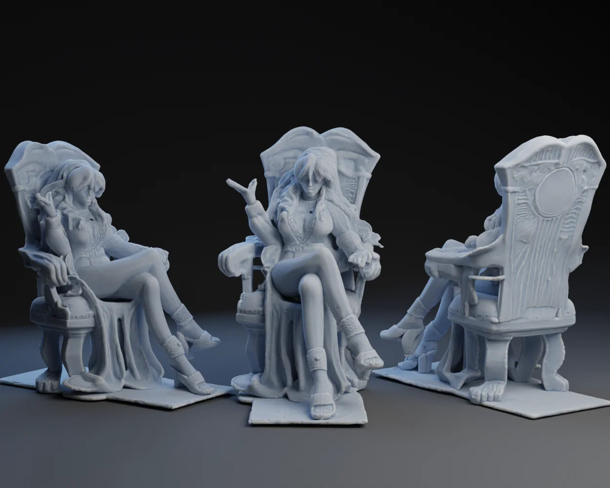 • Kỹ thuật in: Do mô hình có nhiều chi tiết phức tạp, đặc biệt là phần ghế và tư thế ngồi, bạn nên sử dụng hỗ trợ (support) hợp lý để tránh làm hỏng các phần nhô ra.