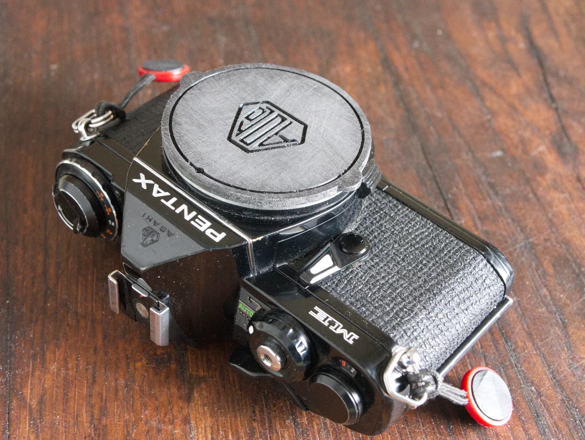 Mẫu nắp đậy thân máy Pentax K thiết kế có hoặc không có logo Asahi Optical Co. Mẫu in không cần support. Lưu ý quan trọng từ Harrow Technical về việc sử dụng nắp nhựa cứng cho dòng máy ảnh Pentax để tránh hư hỏng linh kiện bên trong.