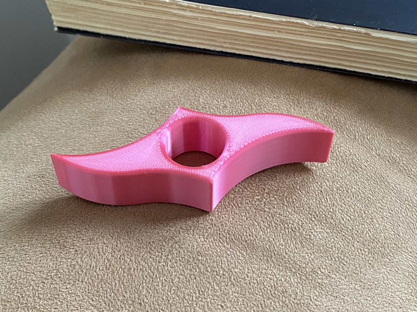 Mình thiết kế mô hình này dựa trên một cái chặn trang sách bằng gỗ mà mình tình cờ thấy được. Trong file Fusion có sẵn thông số để bạn chỉnh kích cỡ lỗ xỏ ngón cái cho vừa vặn. Nếu ngón cái của bạn hơi to, bạn có thể cần điều chỉnh lại bán kính (radius) của phần vát mép (fillet) ở lỗ xỏ nhé.