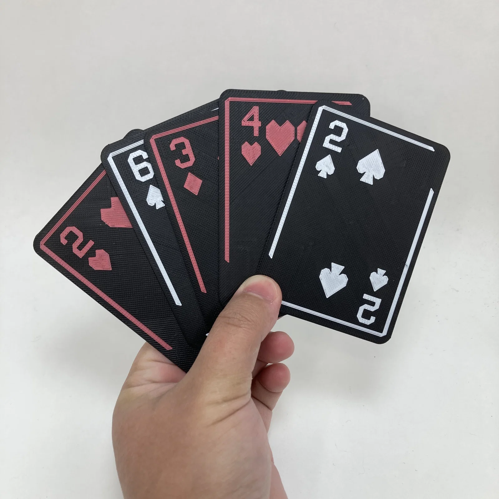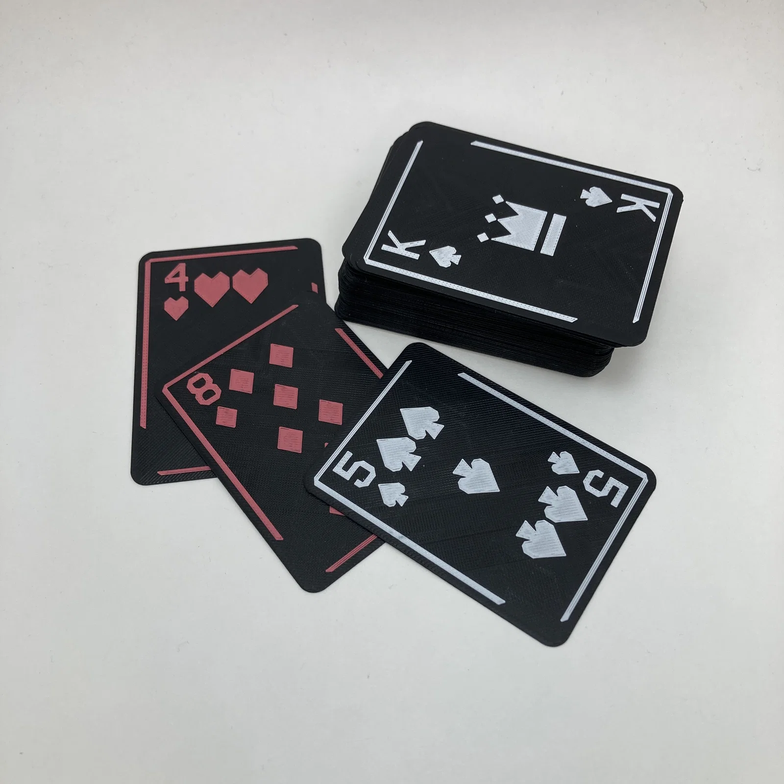 Bạn không có máy in đa màu? Không sao cả! Đây là bộ bài in 3D được thiết kế riêng để bạn phối 2 màu đơn giản chỉ với một máy in 1 màu thông thường. Bộ bài có khả năng chống nước, độ bền cao và bề mặt in nổi rất độc đáo.